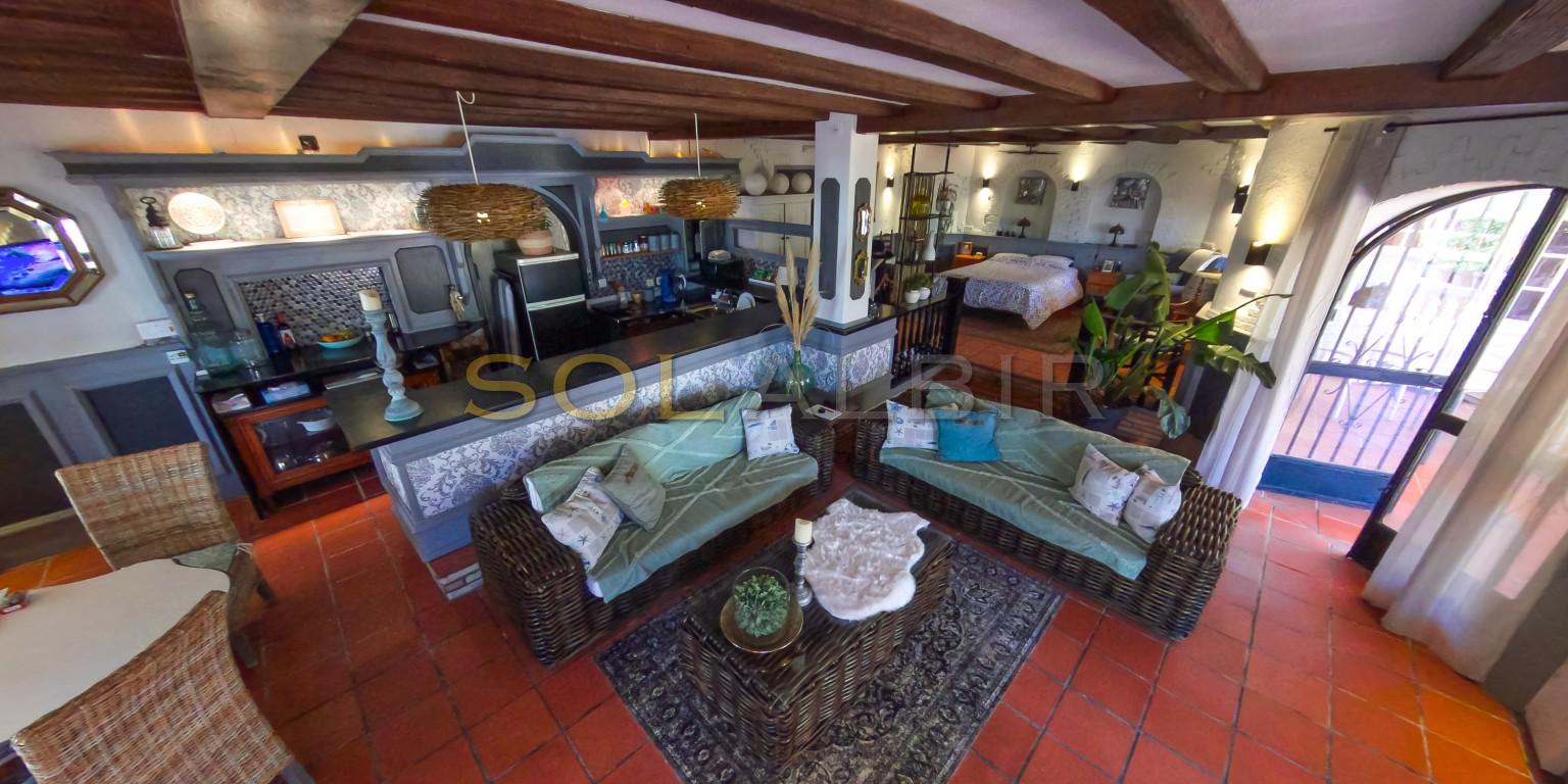 Are you looking for your next home that has plenty of space for your guests€ Are you looking for an investment with a high rental income€ Or are you looking for a Restaurant/Bar Business with ample accommodation at your premises€ If your answer is yes to any of the above, then we have the perfect property for you! This spacious detached villa is spread over 288 square metres and has many possibilities dependent on which lifestyle/business venture you are looking for! The property was previously running as a successful restaurant business with private accommodation and has a restaurant licence if you wish to start trading as a business. The owner closed the restaurant back in 2013 (still have access to accounts should you wish to enquire further on this possibility). The property is situated in a large urbanisation and would service the entire area as this is the only bar/restaurant there. The owner then changed the restaurant part of the property into a sleek designed ground floor open plan apartment which offers a stylish lay out, beamed ceilings, lots of light and an abundance of character. Leading out of the ground floor accommodation is a large wrap-around terrace and patio area with panoramic views of the stunning countryside and mountains in this local area. The plot also has barbecue facilities. There is plenty of room if you wished to add a pool, also access for off street parking is another option. On the ground floor there are a further two rooms (currently used for storage) which could easily be renovated into an additional apartment. Also on this level is a further apartment with a living room, kitchenette, bedroom and spacious bathroom. This apartment also benefits from its own small private garden area. The access to the upper floor has its own private entrance around the side of the main property with its own private courtyard. Upstairs is a generous sunny lounge with large windows, overlooking the mountains, open kitchen, big bedroom, walk in closet and full bathroom. There is also another private entrance at this part of the property that consists of another apartment which is distributed in living room, with kitchenette, 1 bedroom, 1 bathroom. Whether it’s your next home, business or investment you are currently searching for this dream property has it all covered! Book an appointment today and visualise your next move!