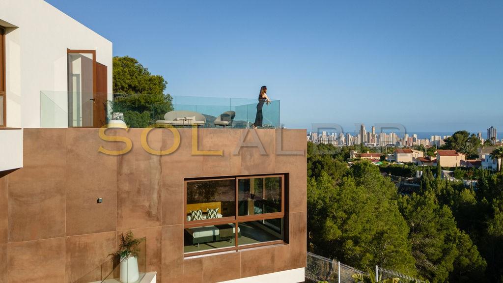 Villa Zen is een spectaculair pand gelegen in de meest prestigieuze urbanisatie van Benidorm. Het ligt op slechts 5 minuten van het stadscentrum en de stranden en op slechts 2 minuten van attractieparken en golfbanen. Met een perceel van ruim 1.700m2 is Villa Zen verdeeld over 535m2 verdeeld over 3 verdiepingen. Binnen zijn er 4 slaapkamers, allemaal met hun eigen kleedkamer en en-suite badkamer, een spectaculaire woonkamer, eetkamer, open keuken en fantastische terrassen om te genieten van het microklimaat van de omgeving. De villa ligt op het zuiden en biedt vanuit alle kamers een spectaculair uitzicht op de zee en de skyline van Benidorm. Naast adembenemende uitzichten kunt u bij Villa Zen genieten van de warmte en pracht van het Infinity Pool, met zoutchlorering en onderwaterraam, een fantastische tuin, prachtige wijnkelder en een eersteklas spa met een verwarmd zwembad-jacuzzi , droge sauna en Turks stoombad. Villa Zen onderscheidt zich doordat het een woning is met maximaal comfort en duurzaamheid, met een Energielabel ‘A’. Liefdevolle accenten en unieke details maken het verschil, met alle comfort en geavanceerde apparatuur, allemaal gemaakt van materialen van topkwaliteit.