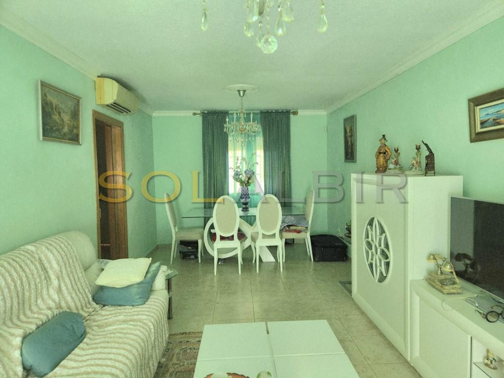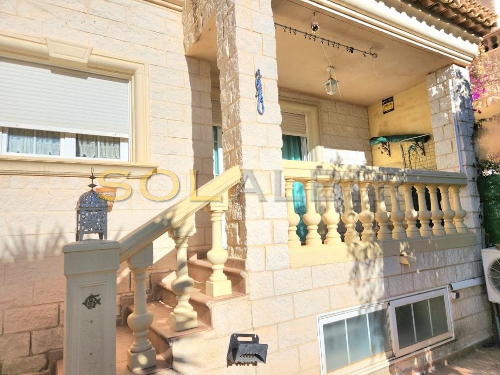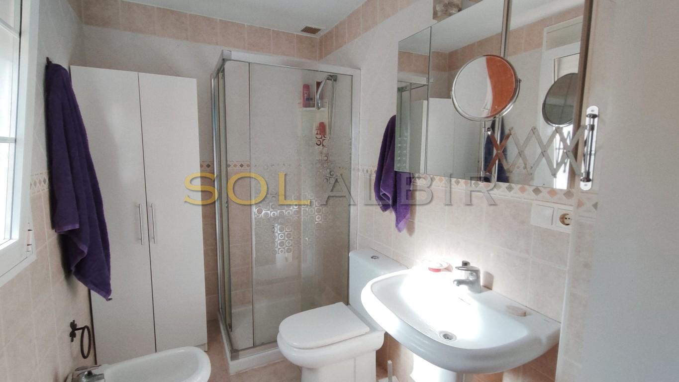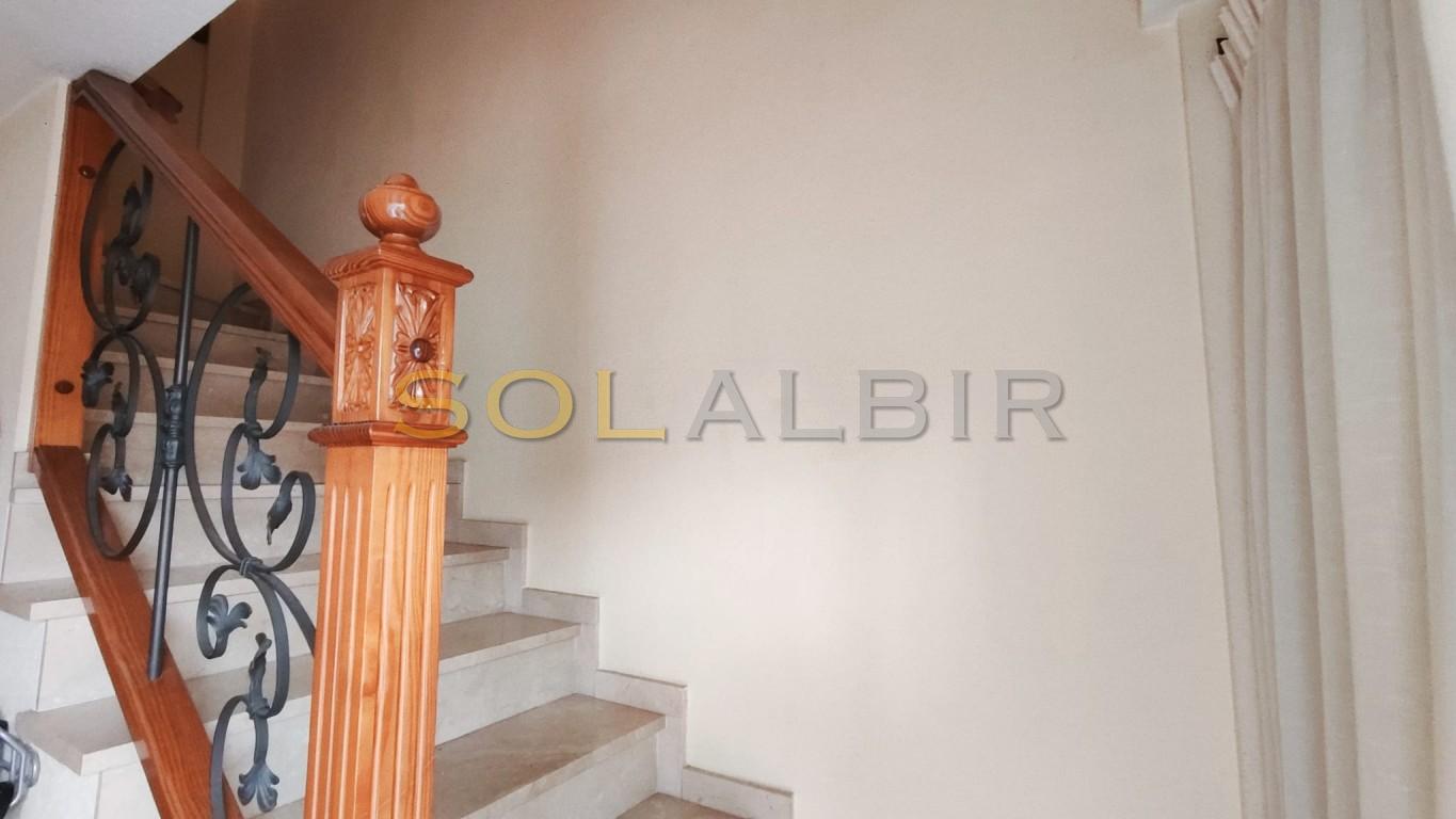 DRIE VERDIEPINGEN TUSSENWONING MET TERRAS EN BALKON OP HET ZUIDEN IN EEN GEWELDIGE URBANISATIE MET GEMEENSCHAPPELIJKE TUIN MET ZWEMBAD. De woning beschikt over 3 slaapkamers met inbouwkasten en 2 badkamers op de eerste verdieping, waarvan één met douche ensuite bij de hoofdslaapkamer en met uitgang naar een zonnig balkon. De andere badkamer heeft een ligbad. Op de begane grond bevinden zich de woonkamer met eethoek, de keuken en een toilet. Er is een ruime garage/kamer met vele mogelijkheden in de kelder en een interne trap tussen de 3 verdiepingen. Er is airconditioning in de woonkamer en de hoofdslaapkamer en pre-installatie in de andere 2 slaapkamers. De totale bebouwde oppervlakte bedraagt 166 m², waarvan 46 m² op de bovenverdieping, 46 m² op de begane grond en 57 m² in de kelder, en in totaal 52 m² aan terrassen en balkon. Er is een alarmsysteem in de woning en video in de urbanisatie. Er is een gemeenschappelijke ruimte met een zwembad, toegankelijk vanaf het terras van het huis, en er is ook een speeltuin voor kinderen. De urbanisatie is gelegen in een rustige omgeving, op korte afstand van de Noorse school in Albir en het natuurpark, op loopafstand van de vuurtoren, en op loopafstand van het centrum van Albir en het strand.