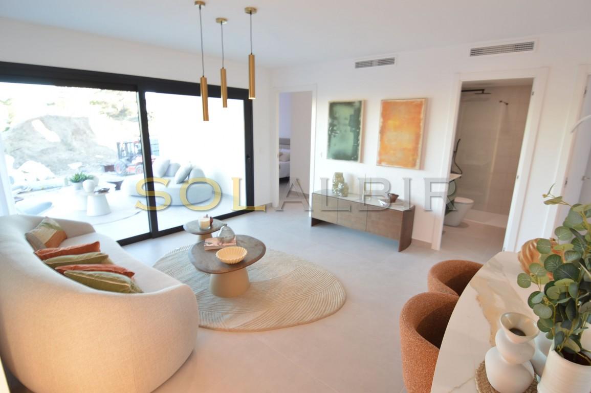 Het gebouw krijgt een zuidoostelijke oriëntatie met uitzicht op zee vanuit de woonkamer en de hoofdslaapkamer. Vanuit de keuken en de tweede slaapkamer is er uitzicht op de bergen (Puig Campana).