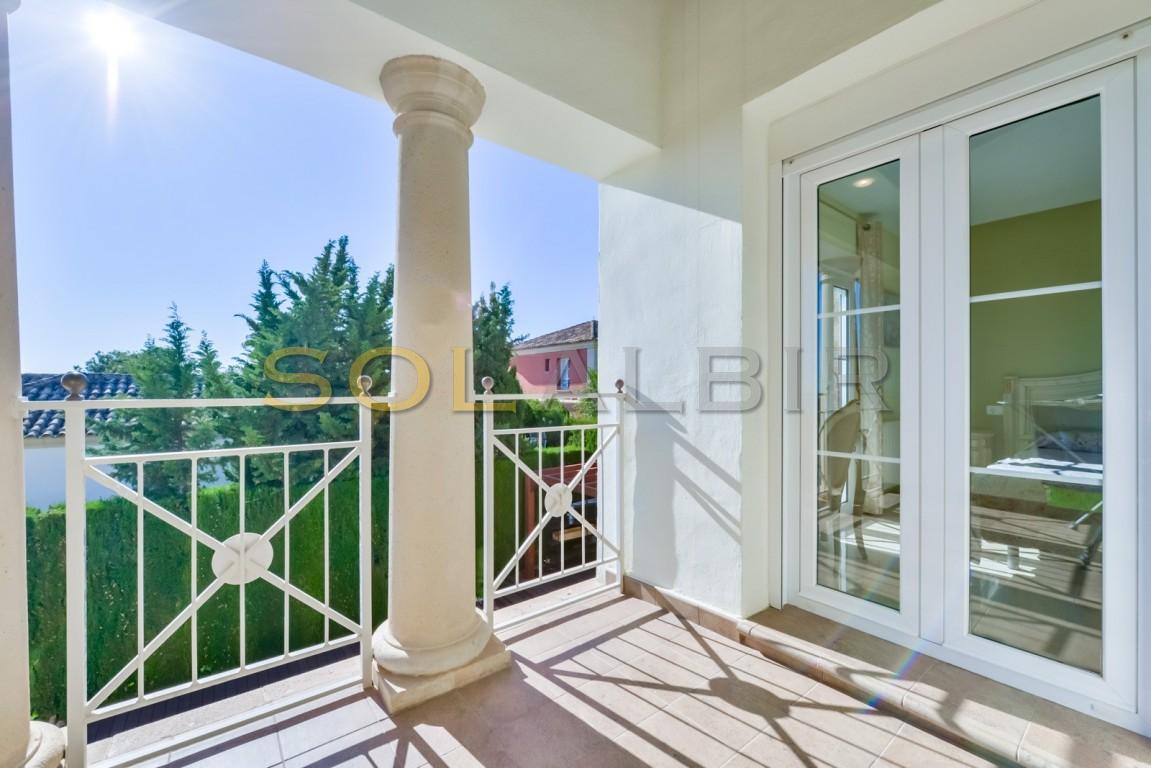 Op de eerste verdieping bevinden zich de drie slaapkamers, waarvan één met een eigen badkamer en een terras met een prachtig uitzicht op de zee en de bergen. In het souterrain bevindt zich een garage voor twee auto's, een grote kleedkamer en een bijkeuken. De woning beschikt over een mooie tuin met een zwembad met tegenstroom, een pergola voor het zwembad en nog een pergola met een buitenkeuken en een ingebouwde open haard. Verder is er een alarmsysteem, videobewaking en gasverwarming met een cv-ketel.