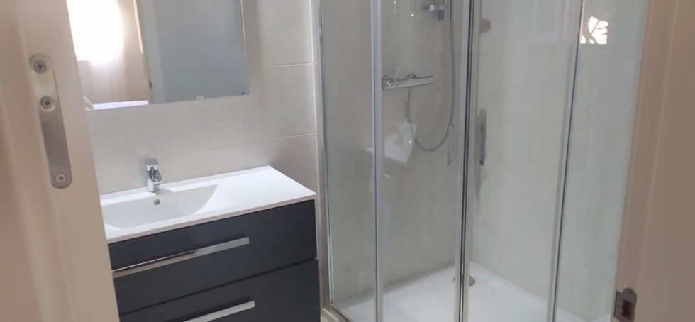 Het hoofdhuis is gelijkvloers, volledig gerenoveerd en heeft een bebouwde oppervlakte van 150 m² op een perceel van 450 m². Het beschikt over 2 slaapkamers, 2 badkamers, een ruime woon-eetkamer en een terras, met een comfortabele en functionele indeling.