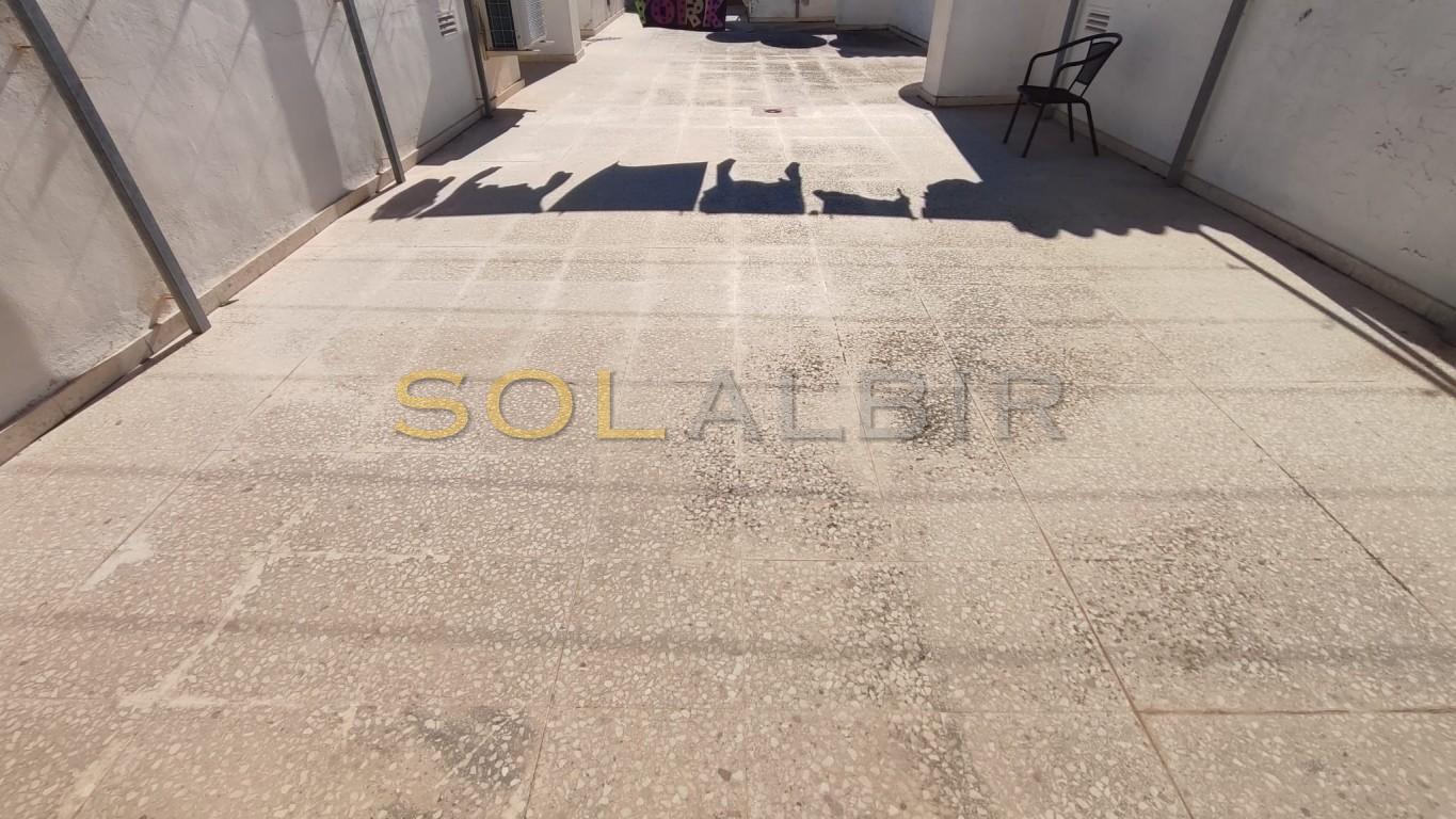Zonnig hoekappartement op de bovenste verdieping met vrij uitzicht op de bergen en het stadscentrum. Dit unieke appartement op de bovenste verdieping is gelegen op het zuidwesten en is zeer licht dankzij de hoekligging. Het appartement heeft een netto oppervlakte van 88 m2, met een bebouwde oppervlakte van circa 100 m2. Het beschikt over een ruime woonkamer met eethoek en toegang tot het balkon op het zuiden met een fantastisch vrij uitzicht op de bergen en de stad. De ruime keuken heeft een eethoek en ernaast een aparte wasruimte. Vanuit de woonkamer is er toegang tot de keuken. Het appartement heeft een entree met inbouwkasten en een gang met toegang tot de twee slaapkamers en de twee badkamers. De hoofdslaapkamer heeft een en-suite badkamer met douche, en de tweede slaapkamer en de tweede badkamer, eveneens met douche, zijn bereikbaar vanuit de gang. Het appartement is voorzien van airconditioning en centrale verwarming op gas (kan wel een update gebruiken). Een afgesloten garage van 17 m2 is bij de prijs inbegrepen. Er is tevens een gemeenschappelijk dakterras en een tuin met zwembad. Het complex is zeer centraal gelegen, op korte afstand van restaurants, winkels, het strand en het openbaar vervoer.