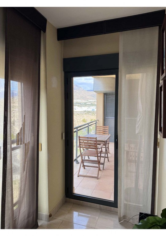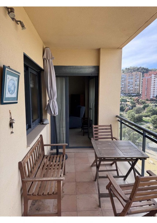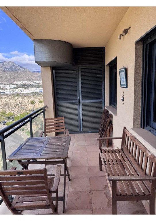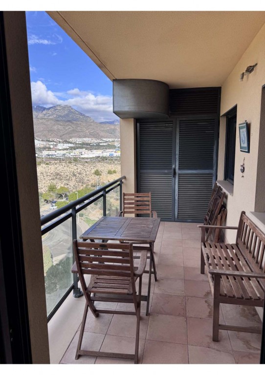 Dit lichte appartement bevindt zich op de 9e verdieping en beschikt over 2 slaapkamers en 2 complete badkamers. Het hart van de woning is een moderne keuken die open is naar de woonkamer, die direct toegang biedt tot een privéterras met een prachtig uitzicht op de bergen.