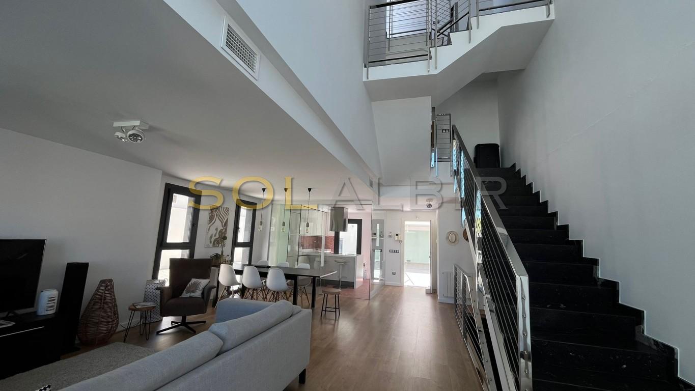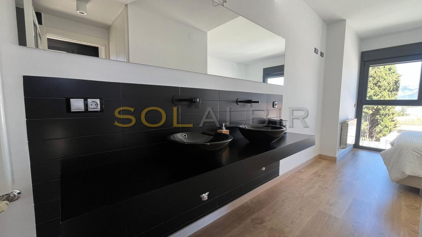 Deze prachtige, moderne woning combineert ruimte, comfort en luxe op een unieke manier. Dankzij de grote ramen geniet de ruime woonkamer van een overvloed aan natuurlijk licht, wat zorgt voor een open en aangename woonomgeving. De woning beschikt over een volledig uitgeruste keuken en een apart gastentoilet op de begane grond, ideaal voor het dagelijks leven en het ontvangen van gasten. Op de eerste verdieping bevinden zich 3 royale slaapkamers en 2 stijlvolle badkamers, afgewerkt met hoogwaardige materialen. De tweede verdieping biedt toegang tot een dakterras met prachtig uitzicht op zee; de perfecte plek om te ontspannen, van de zon te genieten of te dineren. In de kelder bevindt zich een enorme garage met parkeergelegenheid voor meerdere auto's en veel extra bergruimte. De kers op de taart is de "ongebruikte" ruimte van 60 m² naast het terras, perfect voor een privé fitnessruimte, kantoor, speelkamer... noem maar op! Kom zelf kijken. Maak vandaag nog een afspraak voor een bezichtiging en geniet van uw nieuwe woning in Albir.