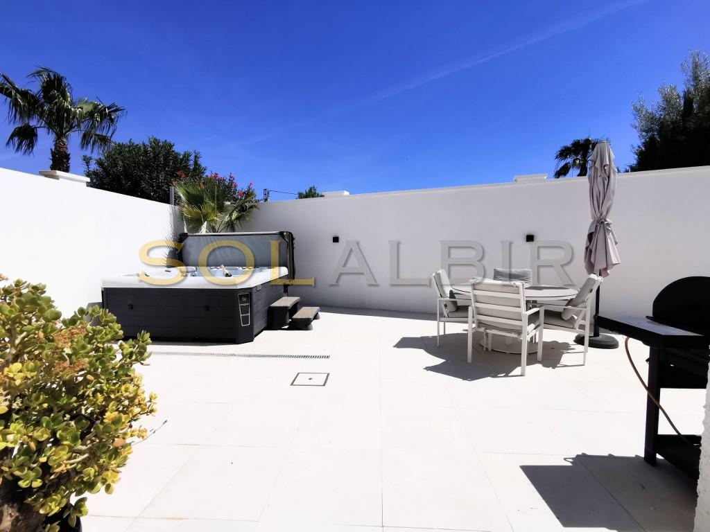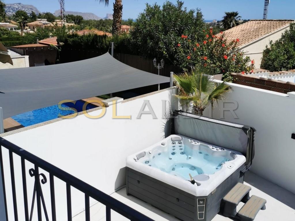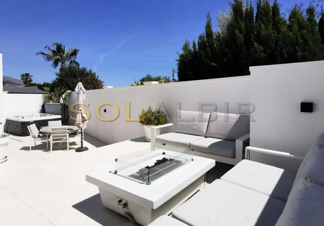 PRACHTIG UITZICHT VANUIT EEN GEMODERNISEERD PAND MET 2 APARTEMENTEN. Het pand is gelegen op een perceel van 334 m² en bestaat uit twee verdiepingen. Op de bovenverdieping bevindt zich de entree naar de woonkamer, waar airconditioning (warm/koud) is geïnstalleerd. Verder zijn er twee tweepersoonsslaapkamers, een ruimte met inbouwkasten en een volledig uitgeruste badkamer met douche en radiator. Er is een ruime woon-eetkamer met een open keuken in moderne stijl en een prachtig uitzicht vanuit binnen en vanaf het terras. Een berging kan eventueel worden omgebouwd tot een extra slaapkamer voor extra comfort. Vanaf uw privéterras kunt u genieten van het adembenemende uitzicht en de prachtige zonsondergangen. Op de benedenverdieping bevindt zich een charmant, volledig functioneel appartement met dezelfde open indeling tussen woon-eetkamer en open keuken. Hier vindt u een comfortabele slaapkamer met een eigen badkamer met douche. De buitenruimte is betegeld en onderhoudsvriendelijk, en u kunt genieten van de privéjacuzzi en een buitenkeuken. Op het perceel bevindt zich een overdekte parkeerplaats en daarnaast een grote open ruimte om te parkeren. De ligging op het zuidoosten garandeert het hele jaar door constante lichtinval en zonlicht, wat zorgt voor een natuurlijke warmte in beide woonruimtes. De woning ligt op korte rijafstand van Altea, Alfaz en La Nucia.