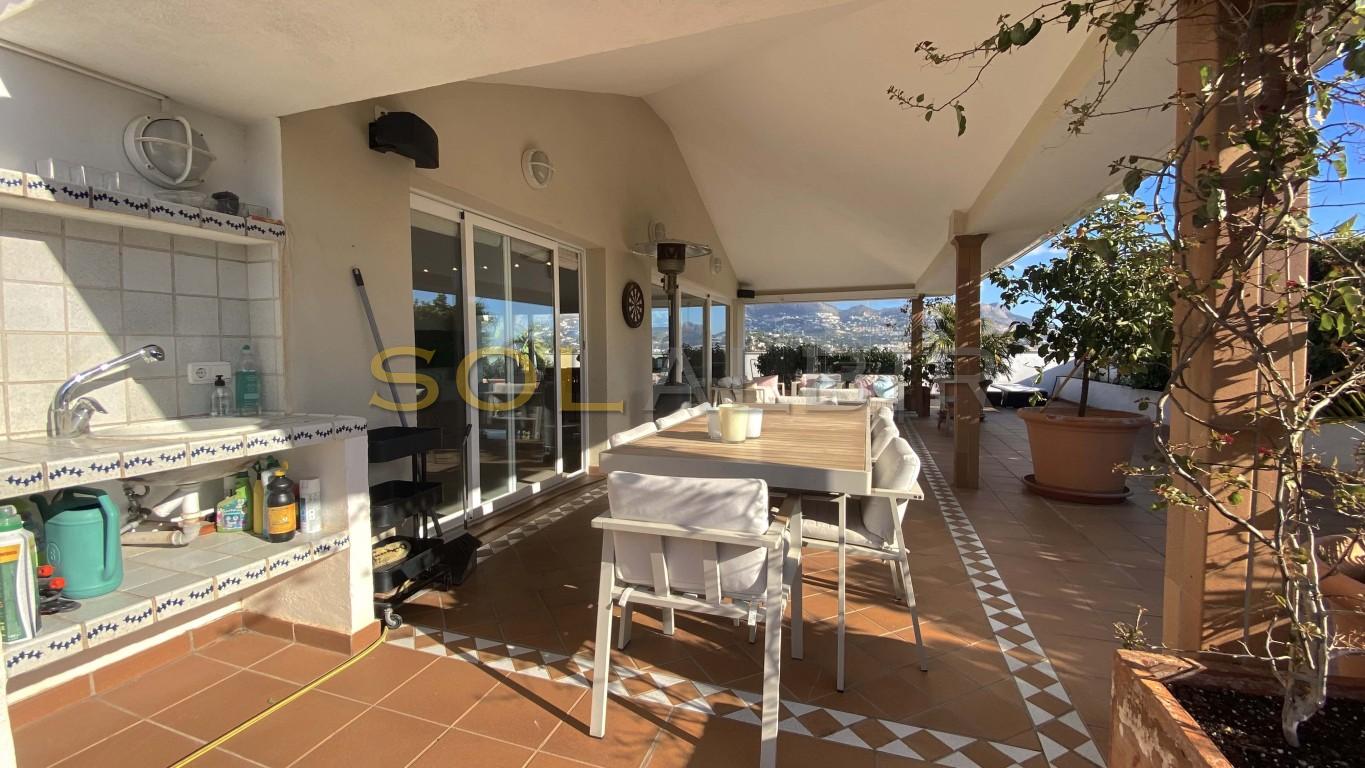 En unik SEA VIEW takleilighet på 600m2 i Altea. Denne luksus duplex leiligheten har 6 soverom, 4 bad, 2 stuer, et vaskerom og sist men ikke minst 4 garasjeplasser og 4 boder i ALTEA! Fra de solrike terrassene kan du nyte havutsikten retning Calpe og Ifach. Gatekanten har en naturlig skjerm av planter som gir deg 100% privatliv. På den store terrassen på totalt 112m2 har du grill, sommerkjøkken, solsenger, hav og spektakulær fjellutsikt. Denne takleiligheten over 2 plan har en strategisk beliggenhet, da du kan gå til handlegaten, stranden, barer og restauranter. Hvis du ønsker å bo i luksus innen gangavstand fra alt, er dette stedet å være...