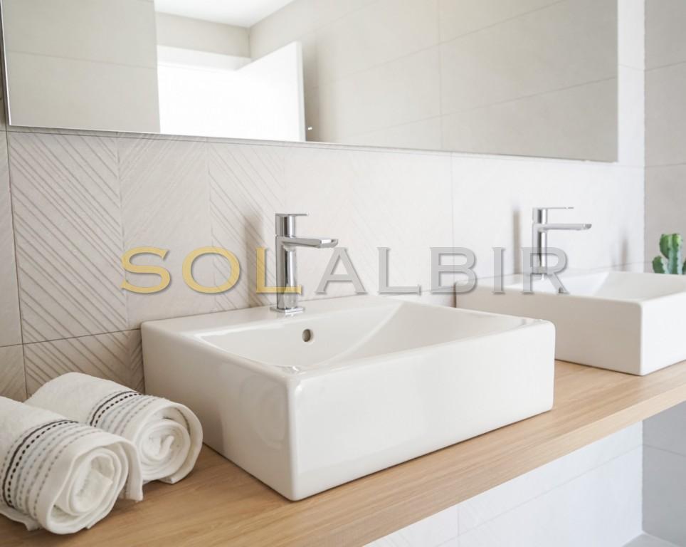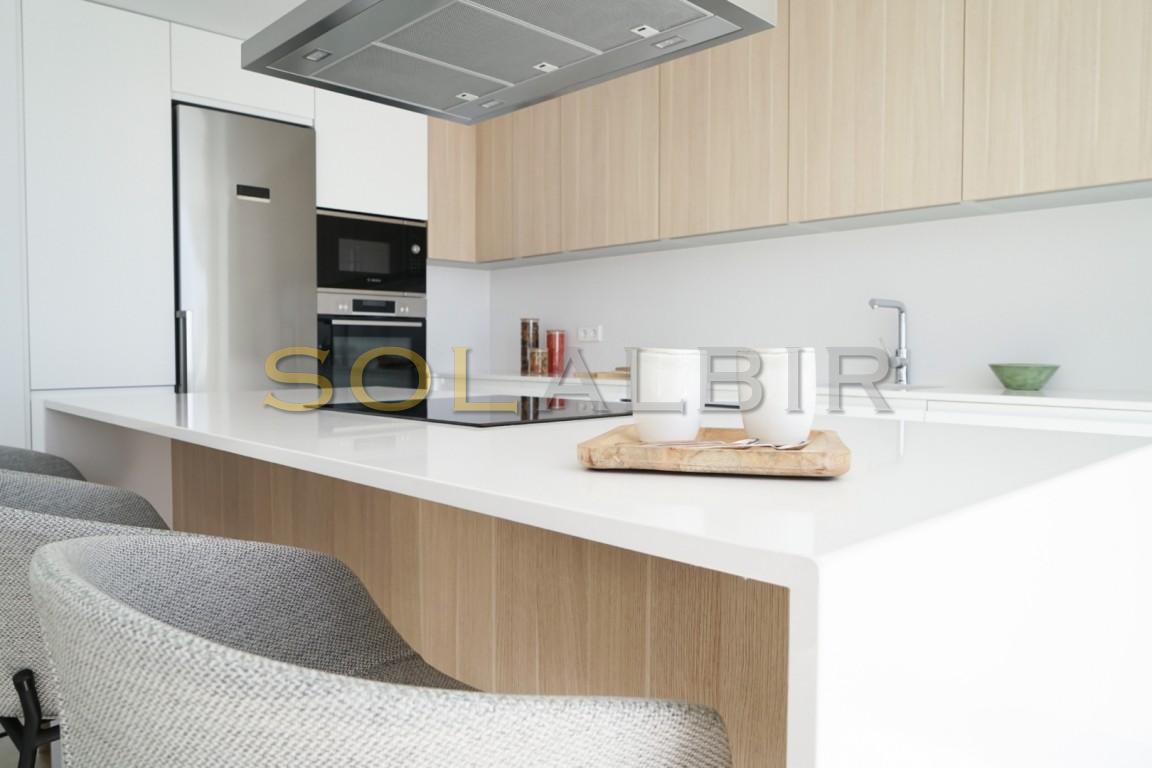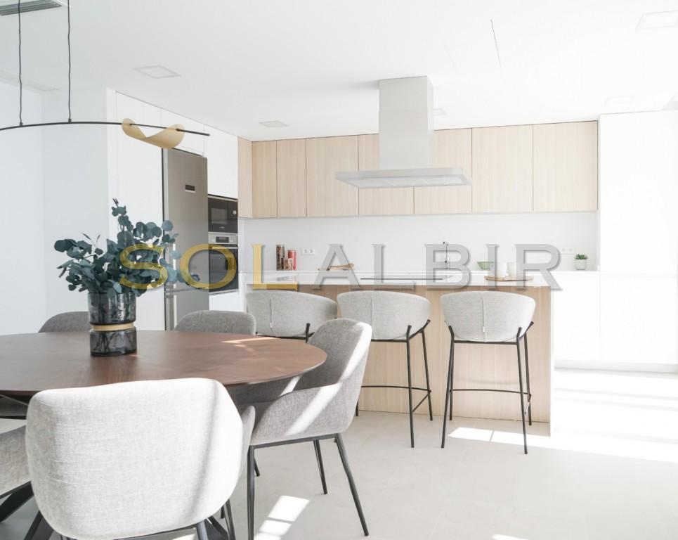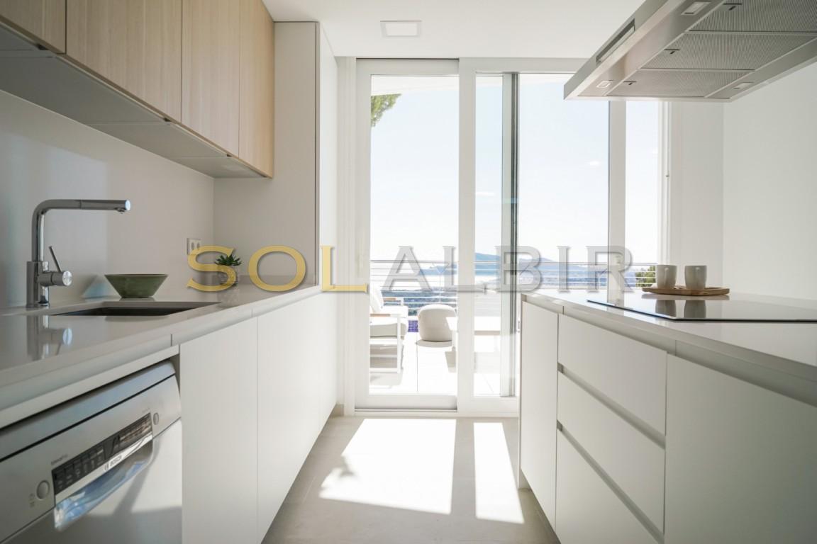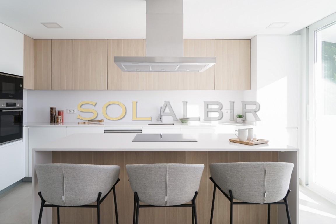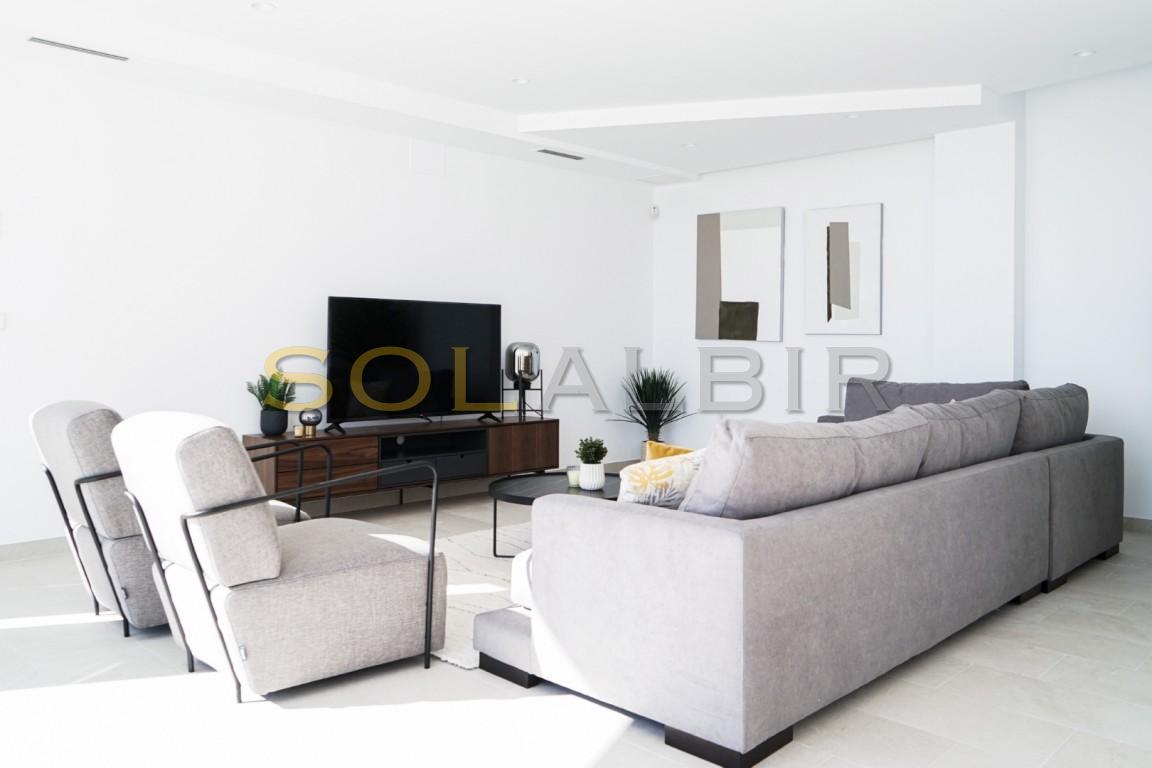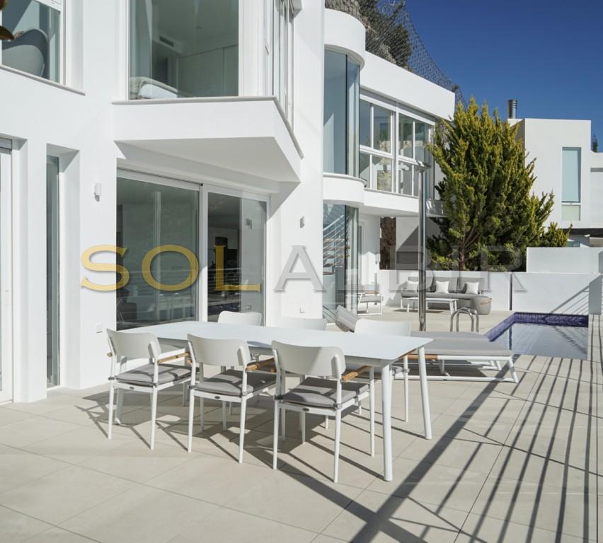 Huset som nylig ble ferdigstilt ligger i en lukket og inngjerdet urbanisasjon i åssiden mellom Altea la Vella og Aleta Hills og er av unikt uvanlig design, og kommer fullt møblert i prisen. Store vinduer og rikelig med naturlig sollys med spektakulær utsikt til kysten og Benidorms skyline dag eller natt fra bassenget, terrassene, stue og soverom.