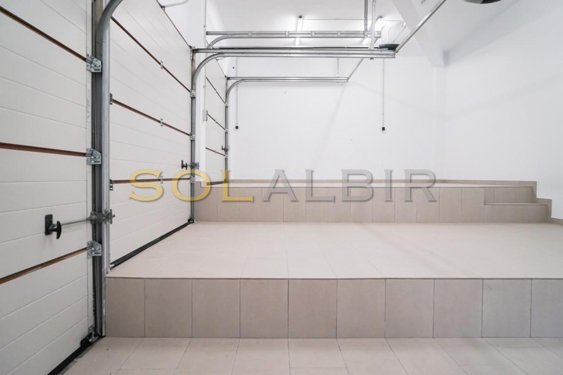 Første etasje har den låste garasjen med 3 dører for 3 biler, men du kan parkere utenfor i stedet og bruke denne til boareal.