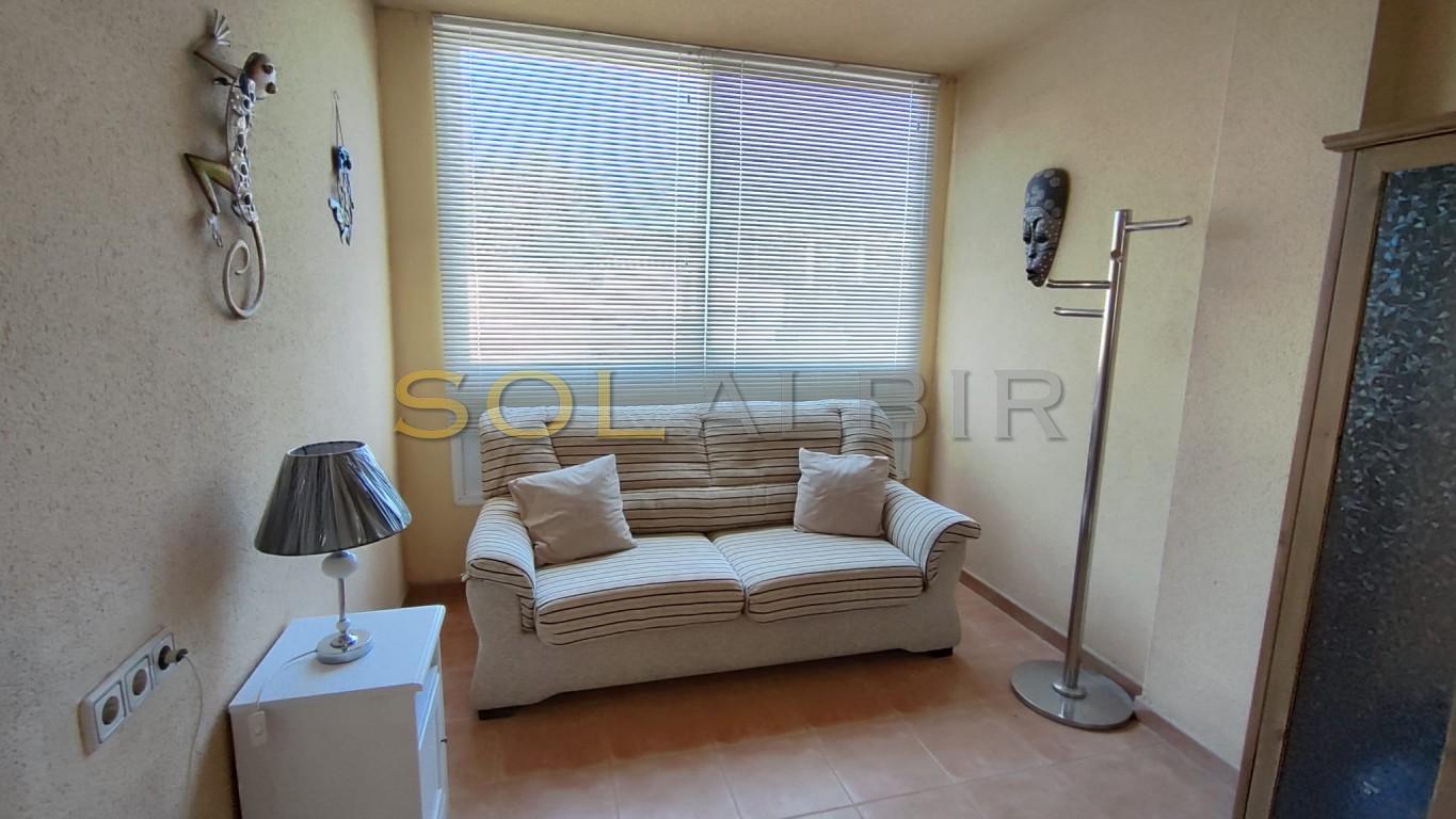 GOD STØRRELSE 1-ROMS LEILIGHET - SENTRALT PLASSERT I ALBIR I URBANISASJON MED BASSENG. Leiligheten kan være attraktiv for langtidsleie, med romslig stue med spiseplass og innglasset overbygd terrasse med sovesofa, åpen kjøkkenløsning med vaskerom med oppvaskmaskin, samt ett soverom og bad med badekar. Air condition varm/kald i leiligheten. Bygget areal ca 67 m2 og netto areal 50 m2. Prisen inkluderer parkeringsplass utendørs og bod ca 9 m2 i kjeller. Flott fellesområde med basseng og hageområde i gangavstand til alle i Albir.