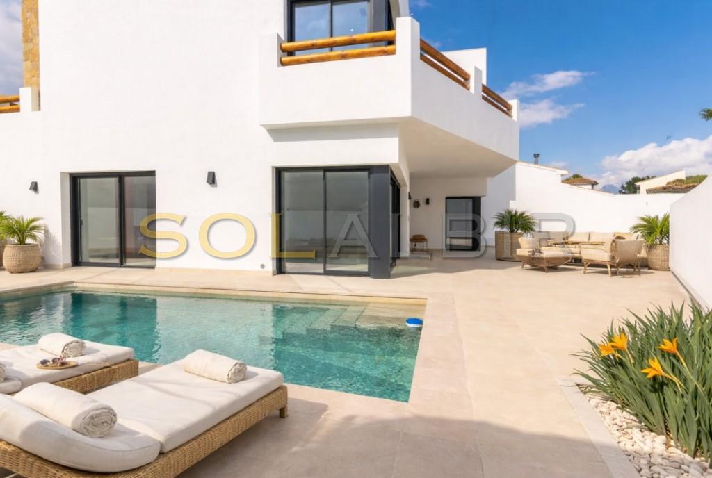 Oppdag luksuriøs livsstil i denne fantastiske nybygde tomannsboligen (kun ved garasjen), i det fredelige nabolaget Albir, som nesten er ferdigstilt (per januar 2026).