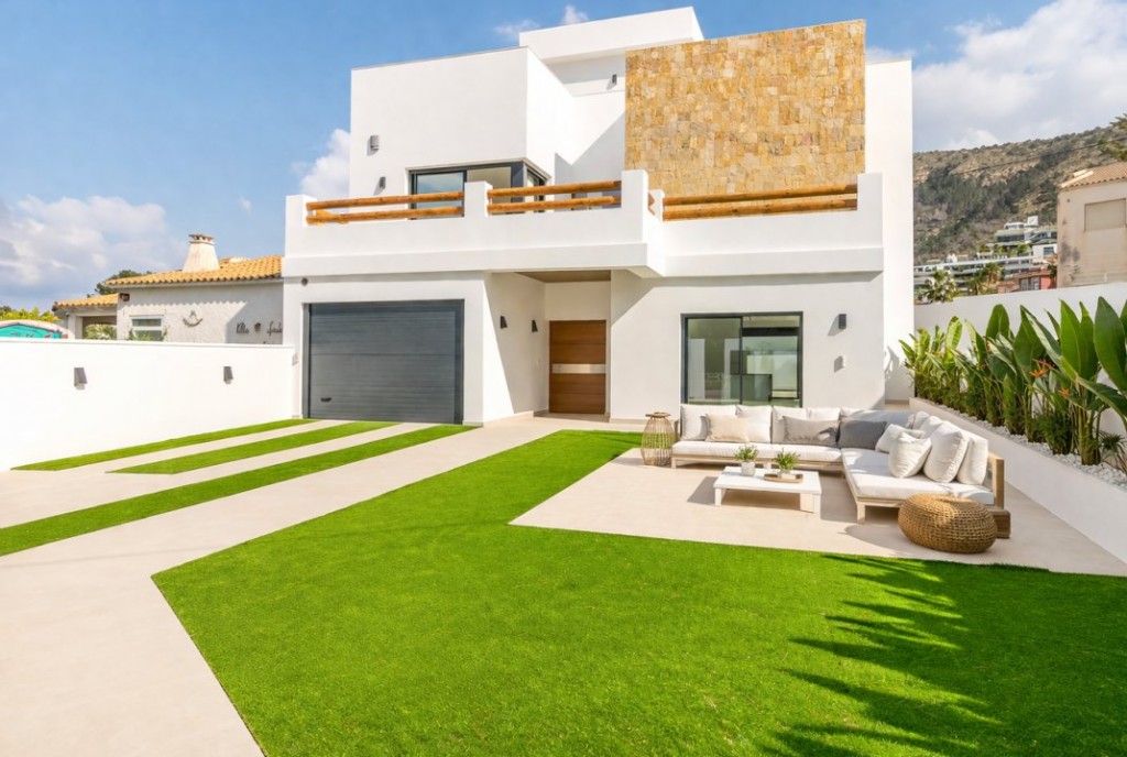 Oppdag luksuriøs livsstil i denne fantastiske nybygde tomannsboligen (kun ved garasjen), i det fredelige nabolaget Albir, som nesten er ferdigstilt (per januar 2026).