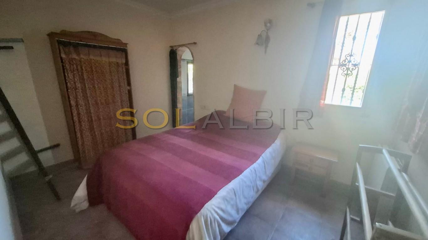 Koselig rekkehus i den populære urbanisasjonen Nou Espai I i La Nucia. Beliggende på en hjørnetomt med innganger fra to forskjellige veier, hvor den nedre delen tilbyr inngang direkte fra gatenivå. Dette gir tilgang til garasjen, som for tiden brukes som bod. Kjellerområdet kan enkelt gjøres om til separat gjestebolig. I øverste etasje har vi selve huset med et romslig åpent kjøkken (med separat vaskerom) og stue, med tilgang til en terrasse med fantastisk havutsikt. Ett soverom har eget bad med dusj, det er et annet bad med badekar og et andre soverom. Dette rekkehuset med 2 soverom tilbyr rikelig med muligheter for enten permanent opphold eller som fritidsbolig. Spesielt siden vi rett ved siden av huset har et stort grøntområde med vakkert vedlikeholdte hager og et felles svømmebasseng med barnebasseng og lekeområde. Kom og finn ditt nye hjem og bestill ditt besøk hos oss i dag.