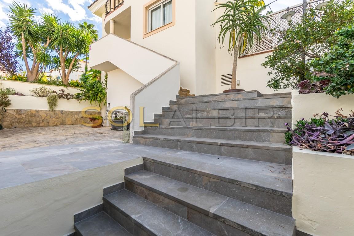 Utenfor er den 850 m² store tomten designet for å få mest mulig ut av middelhavsklimaet, med privat basseng, sommerkjøkken, lekeområde, hage og romslige terrasser med panoramautsikt.