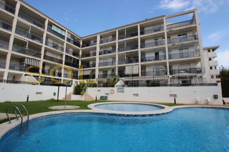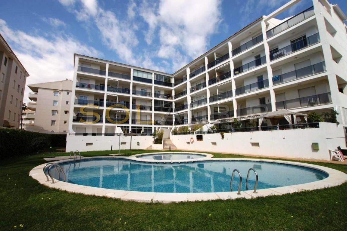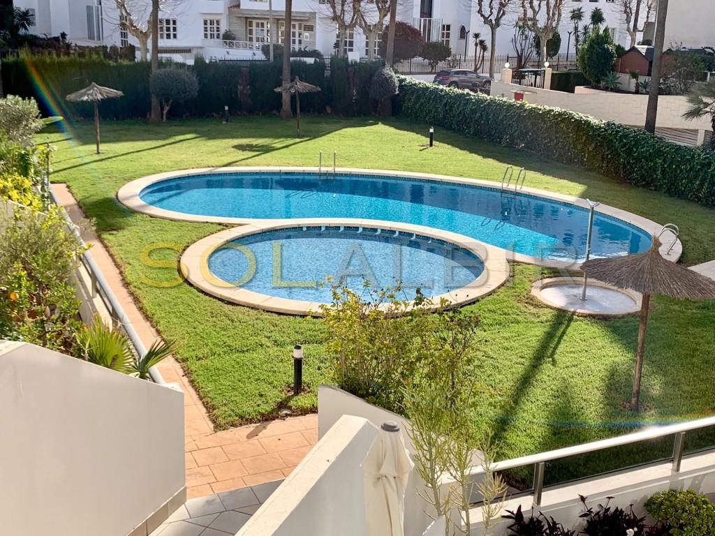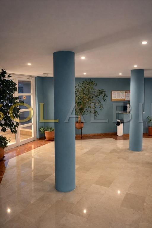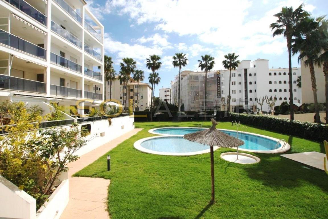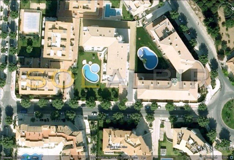 LUKSURIØS SENTRISK LEILIGHET MED SØRVENDT TERRASSE, HVOR DU KAN NYTE SOLEN HELE VINTEREN. - Eiendommen ligger i et fint kompleks med svømmebasseng, barnebasseng og store grøntområder, bare noen skritt fra stranden og alle fasiliteter. Leiligheten har 2 soverom, 2 bad, ett av dem i hovedsoverommet, åpent kjøkken med spiseplass og vaskerom, stue med utgang til overbygd terrasse. Bod og parkeringsplass i underetasjen er inkludert i prisen.