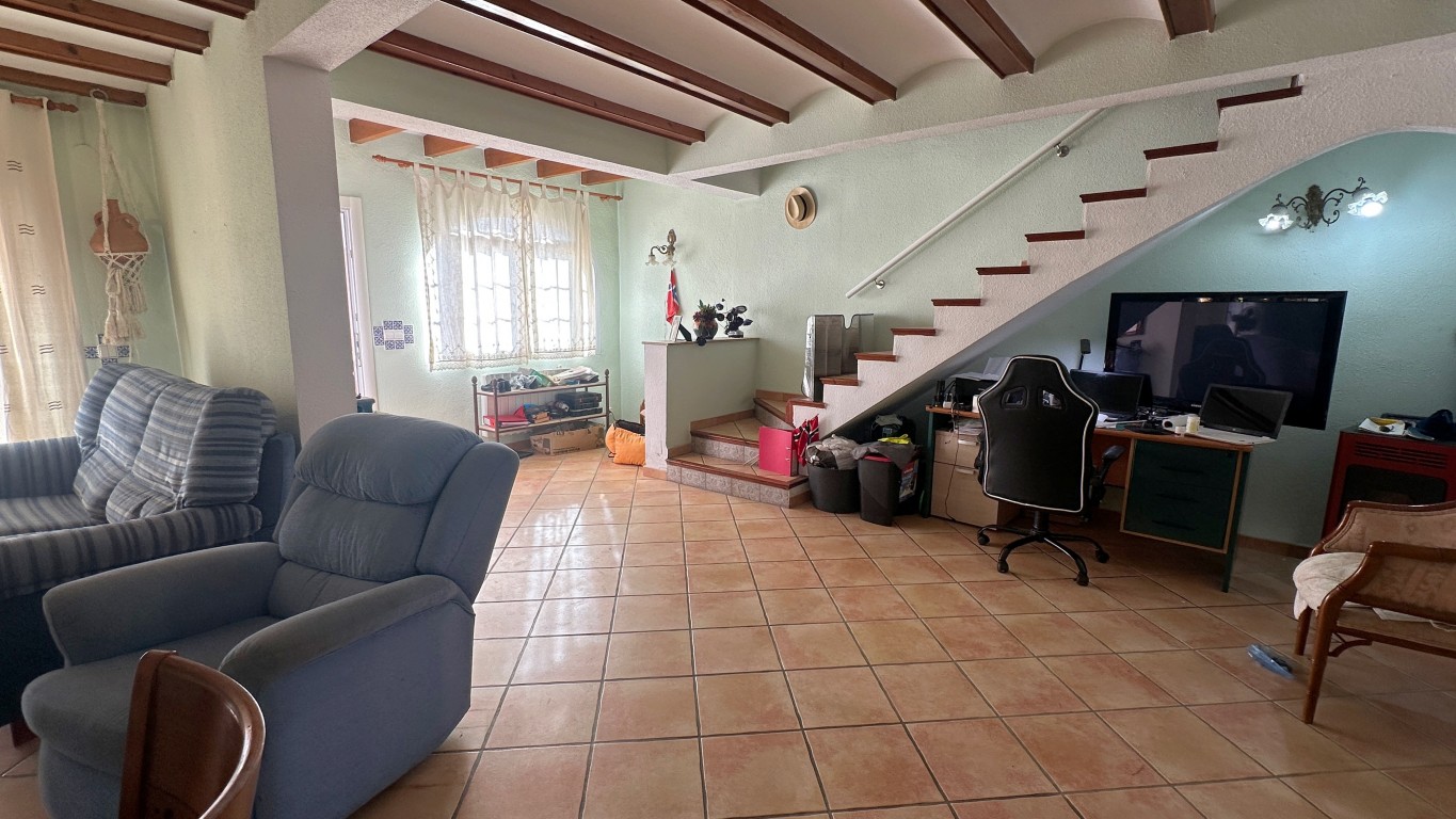 Hvis du ønsker deg et sted i solen OG en fast inntekt, er dette din mulighet! 500 meter fra ALBIR finner du denne eneboligen med gjesteleilighet. Hovedhuset har i første etasje en sørvendt terrasse, en romslig stue-spisestue med peisovn, et stort kjøkken med separat vaskerom tilknyttet hagen. Også et soverom og bad. I første etasje er det ett stort soverom (før var det to) med eget bad. En terrasse med havutsikt. I gateplan er det en gjesteleilighet med stue/kjøkken, soverom og stort bad. Leien er 600 €/måned. Den gode leietakeren liker å bli boende, men vil selvfølgelig dra når du vil. Ved siden av denne leiligheten er det en garasje. Det er et felles svømmebasseng tilgjengelig. Ring for en befaring i dette canguru-huset.