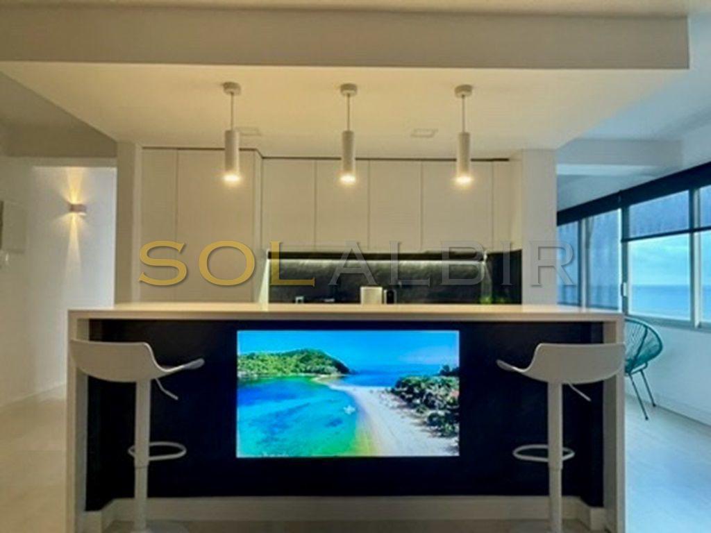 Leilighet med ett soverom til salgs med utsikt over havet på La Olla-stranden i Altea. Den er på 65 m2 og har blitt renovert. Alle rommene er svært lyse og utstyrt med gardiner for å filtrere lyset og klimaanlegg. Fullt utstyrt kjøkken med hvitevarer av høy kvalitet, med frokostbar som åpner ut mot den lyse stuen. Den har også en romslig stue med fantastisk havutsikt, et renovert bad med dusj og et stort soverom med dobbeltseng og havutsiktsvindu. Den har direkte tilgang til stranden. Den har alarm og smartlås. Leiligheten har lisens for ferieutleie. Det er en ideell leilighet for de som elsker lyden av havet, som har en magisk og avslappende effekt. Den er svært komfortabel og tilbyr spektakulær havutsikt fra alle hjørner.