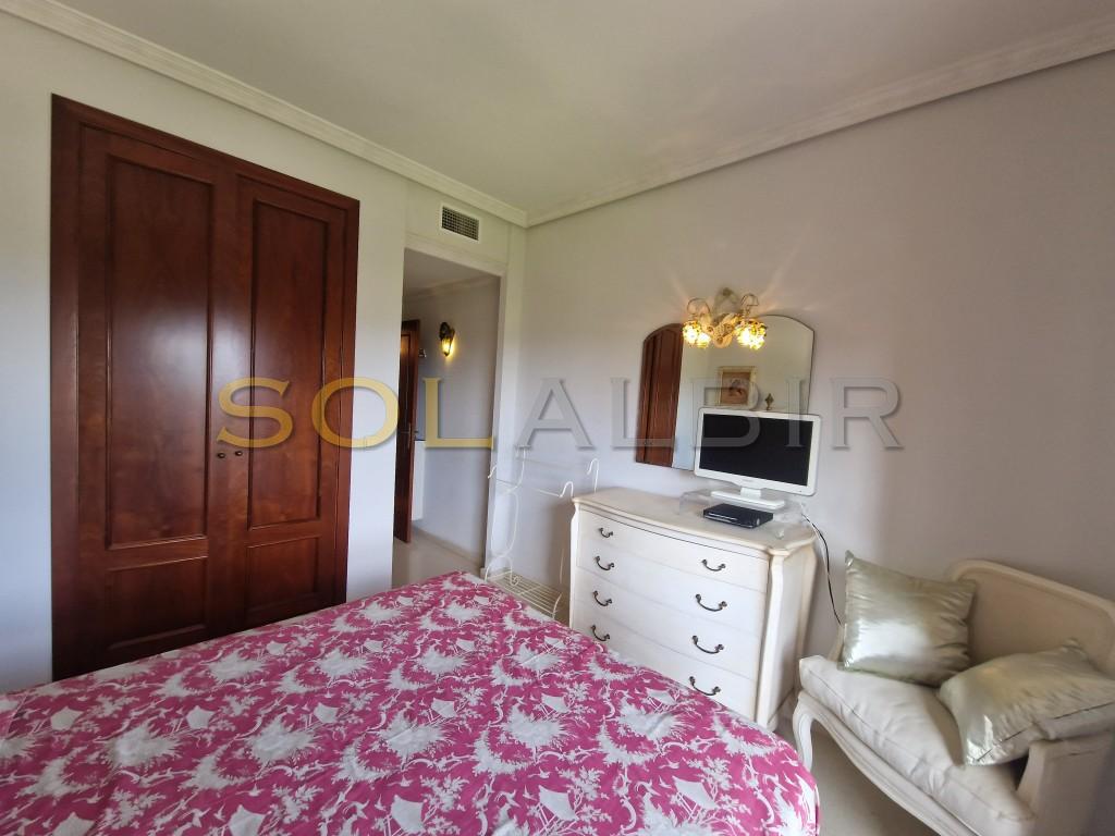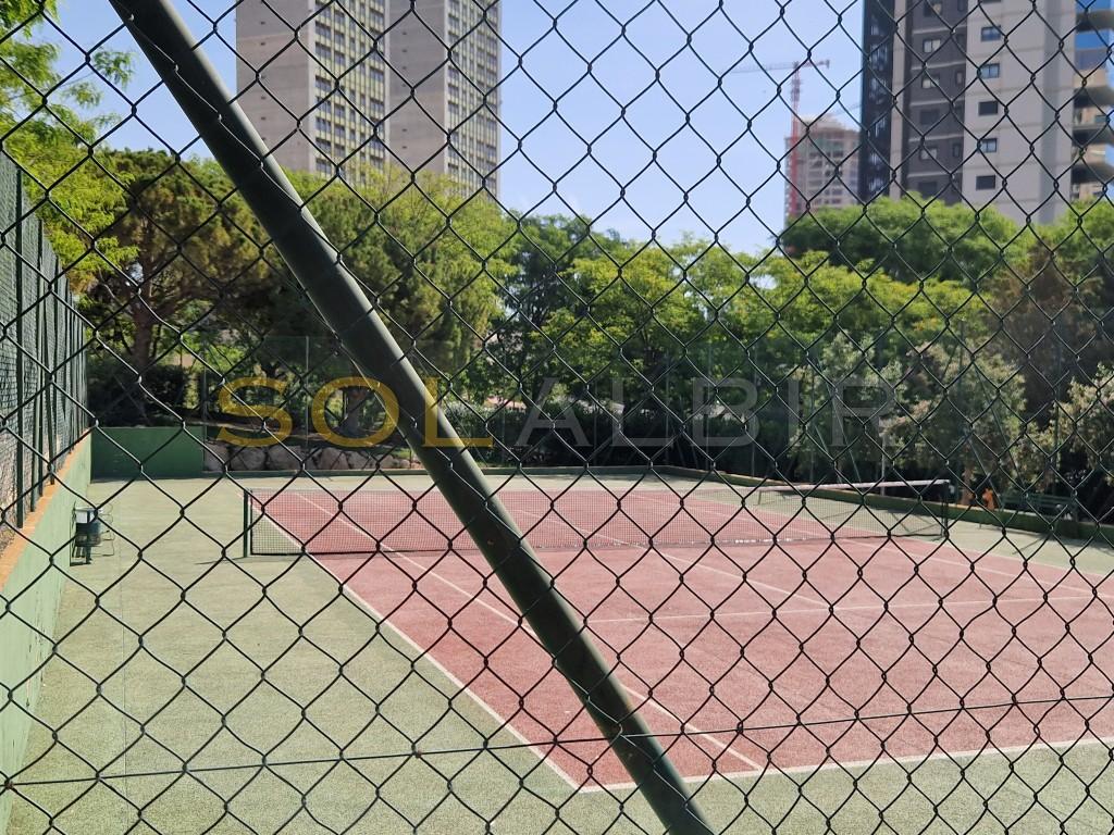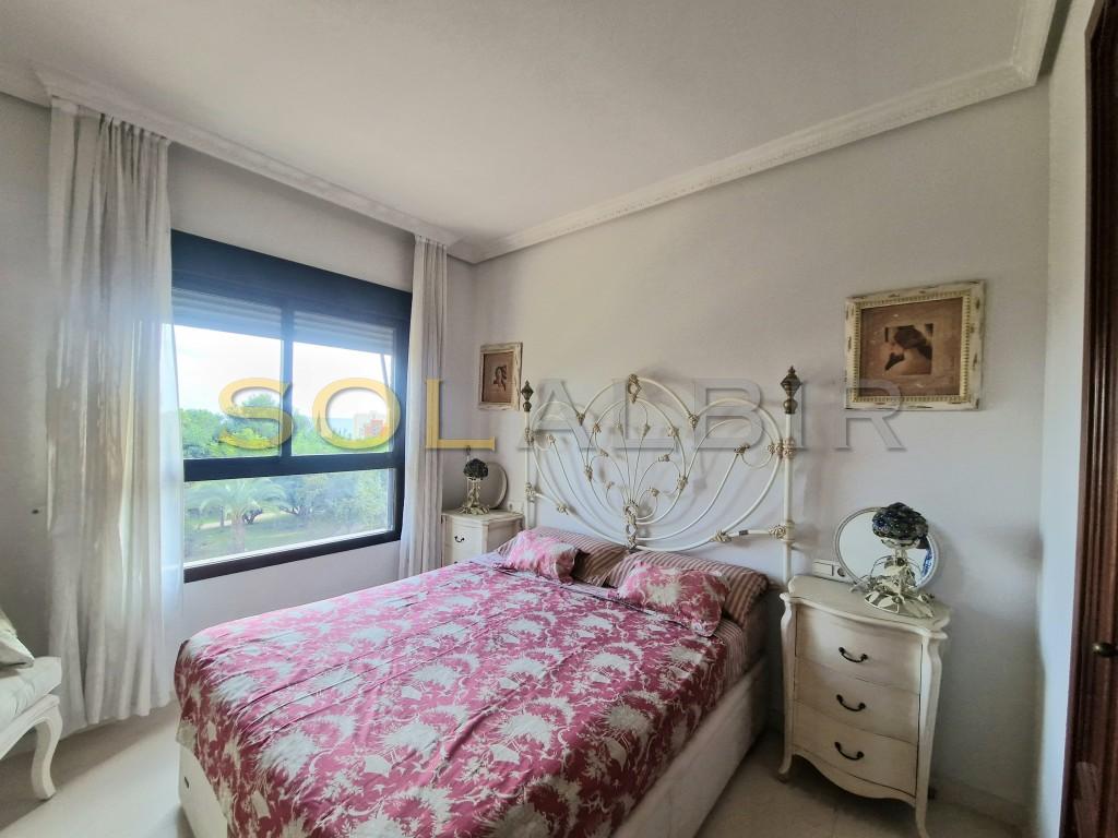 This absolutely exclusive property stands out for its comfortable design, with an area of 80 m², ideal both as a first or second residence, or even as an investment. It has 1 very spacious bedroom with unobstructed views of the sea, and a living room with its terrace (also with very open views of the sea and the city). The fully furnished and equipped kitchen has an induction hob, oven, microwave, dishwasher, fridge, washing machine and dryer. It has mountain views and is complemented by a functional laundry area. The house has hot/cold ducted air conditioning. The production of domestic hot water is carried out by city gas. In addition, the built-in wardrobes distributed in different rooms provide optimal storage space. The urbanization offers excellent common areas designed for the well-being and enjoyment of its residents: extensive garden areas with natural grass and trees, a large lake-type swimming pool, tennis court, sauna, gym equipped with various machines and a children's area. The outdoor car park is large and equipped with video surveillance cameras for added security. Located just a 5-minute walk from the beach, with all amenities and public transport within reach, this property is ideal for those who value exclusivity, style and a high level of quality of life.