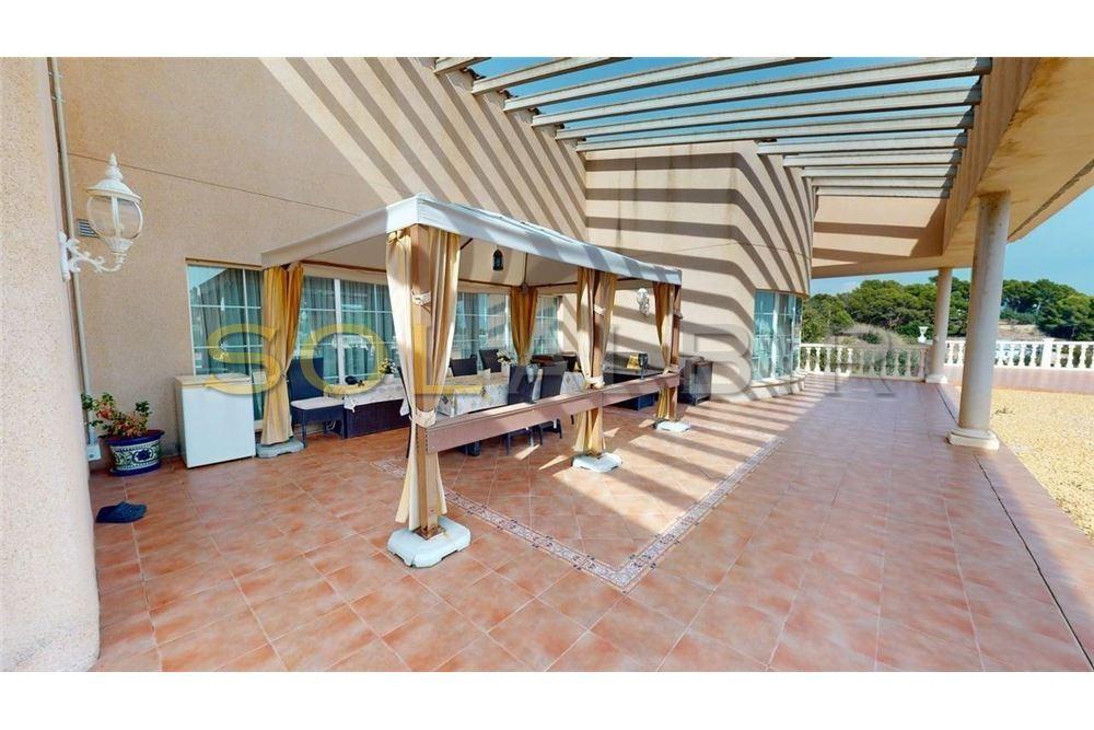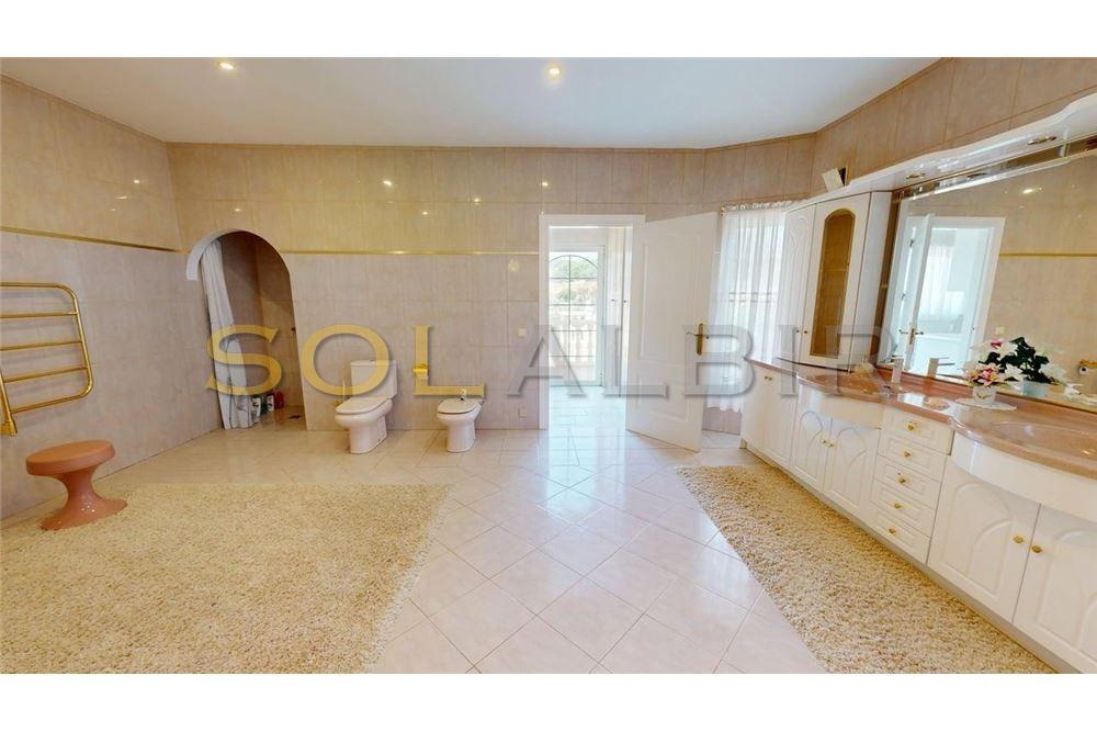 Luksusvilla til salgs, 600m² med 16 000m² tomt, i Alfaz del Pi. Den ligger i et rolig område, langt fra byens mas og kjas. Den har to etasjer med to leiligheter. Leiligheten i første etasje er for gjester eller leietakere hvis du bestemmer deg for å leie den ut. Den har 4 soverom med innebygde garderober, to åpne kjøkken, 4 komplette bad, 2 stuer, 2 spisestuer, 2 terrasser, et svømmebasseng, hager, en garasje og mye mer. Den har klimaanlegg og oppvarming, solcellepaneler, strøm, vann, dryppvanning, en stor bod og et sikkerhetssystem.
