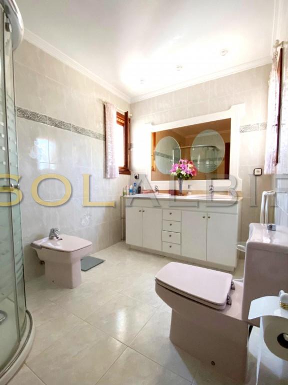 - Første etasje: 4 soverom, ett av dem med eget bad, og et annet med tilgang til et femte rom og arbeidsrom/kontor, en terrasse og et fullt utstyrt bad med dusj. Privat basseng med hageområde. Kjøkken med grill i basseng-/hageområdet. Bod. Kjeller med flere rom, brukt som bod. Overbygd parkeringsplass på tomten. - Ikke nøl med å besøke, du vil elske det!!