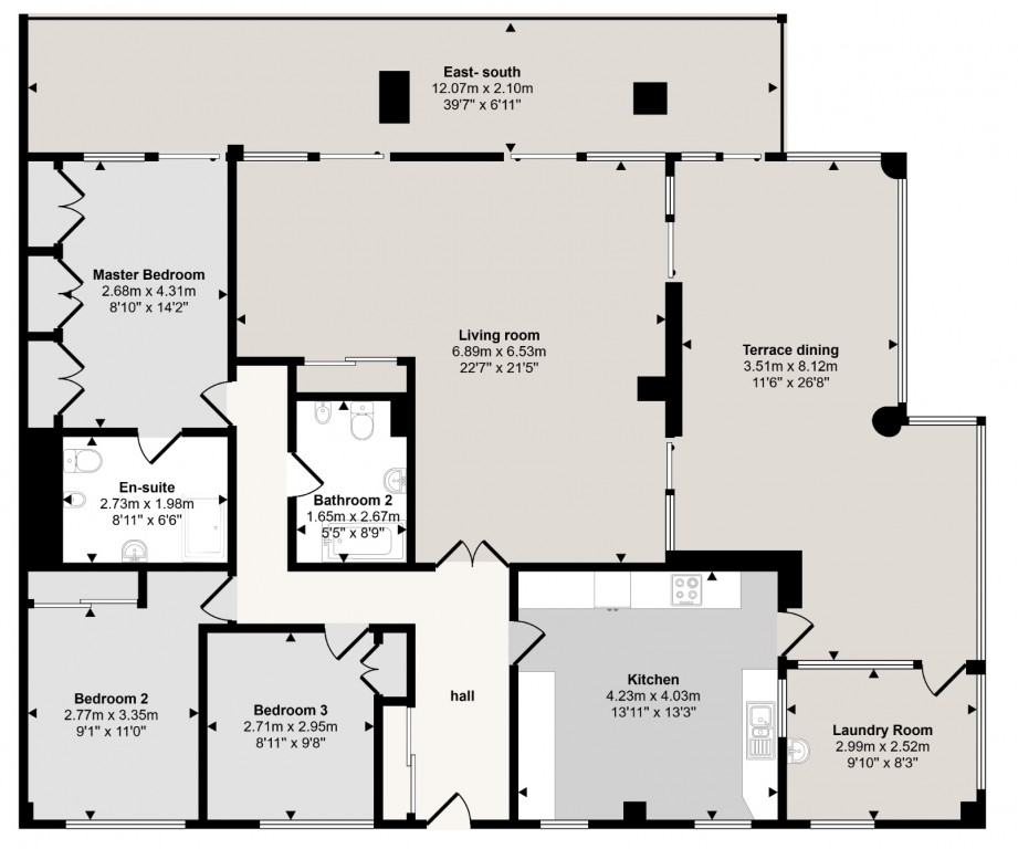 3 romslige soverom