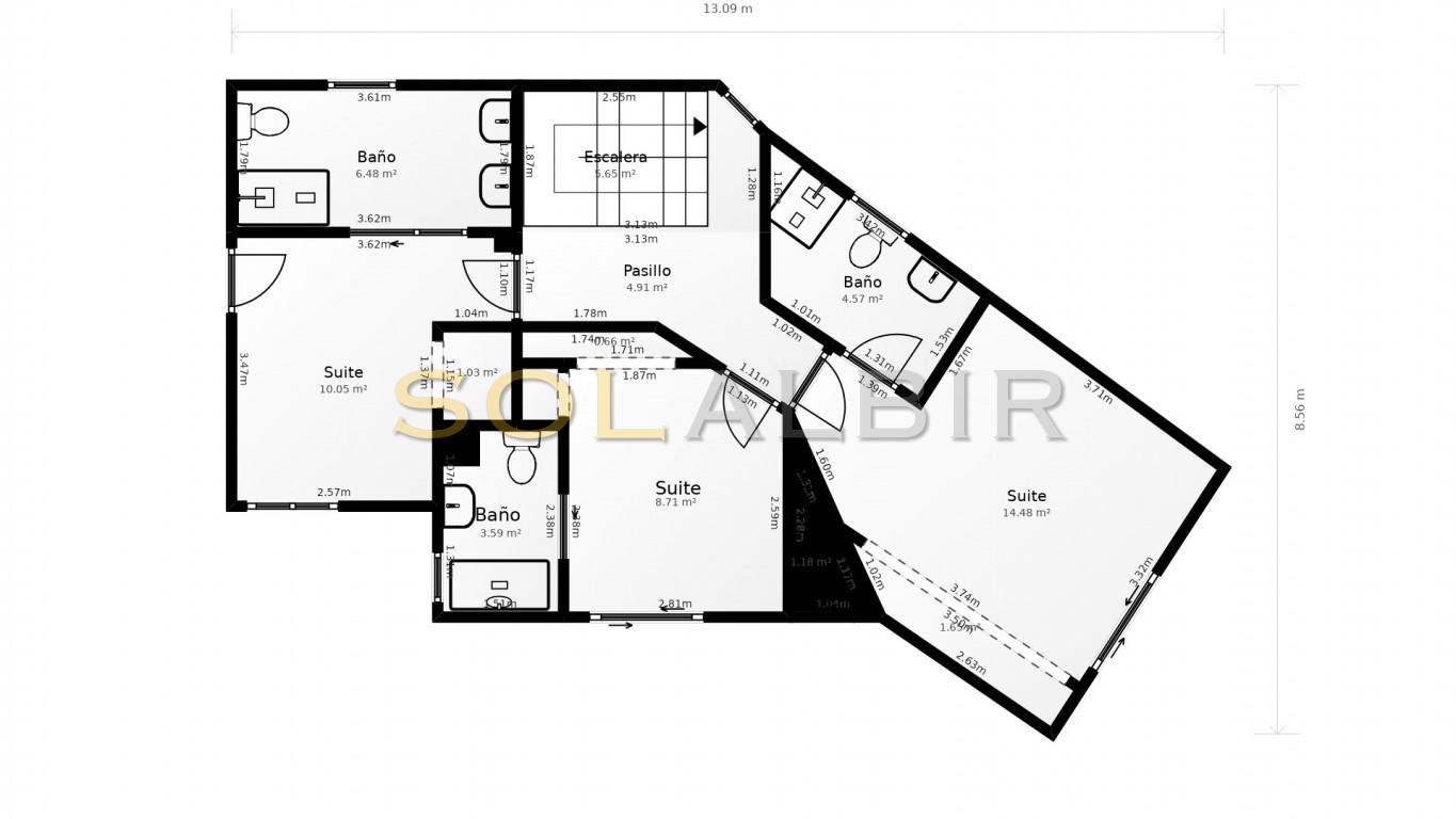 Eiendommen har 5 soverom med eget bad og 5 bad med steinfargede materialer, stemningsbelysning og dusjkabinett. Hovedsuiten har et frittstående badekar og dobbel servant.