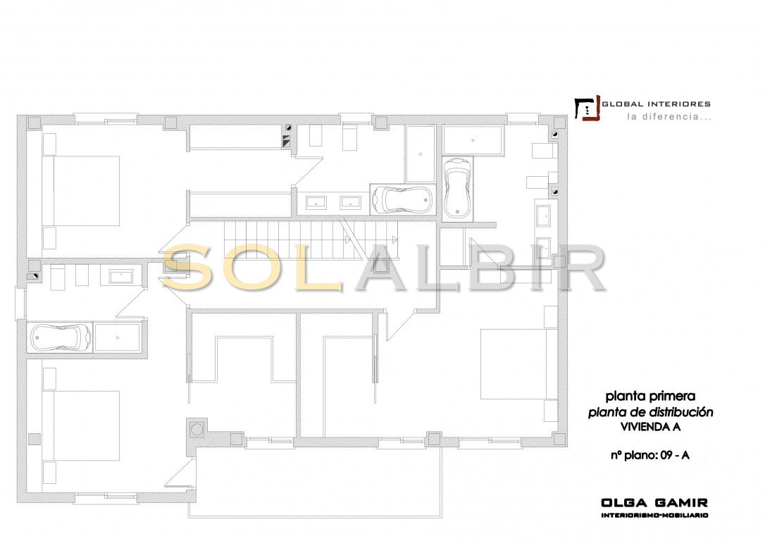VI PRESENTERER EN AV TO DESIGNVILLAER TOMANNLEVENDE BOLIGER SVÆRT NÆR ALBIR SENTRUM. Svært romslige og designet av Olga Gamir designstudio, ligger i sentrum av El Albir, så beliggenheten her er avgjørende, og i en veldig privat og rolig blindvei med bare 7 hus og 500 m fra sjøen. I flatt område med perfekt gangavstand til alle tjenester. Alle feriestedets fasiliteter som supermarkeder, barer og restauranter ligger svært nærme, og det er gangavstand til stranden.