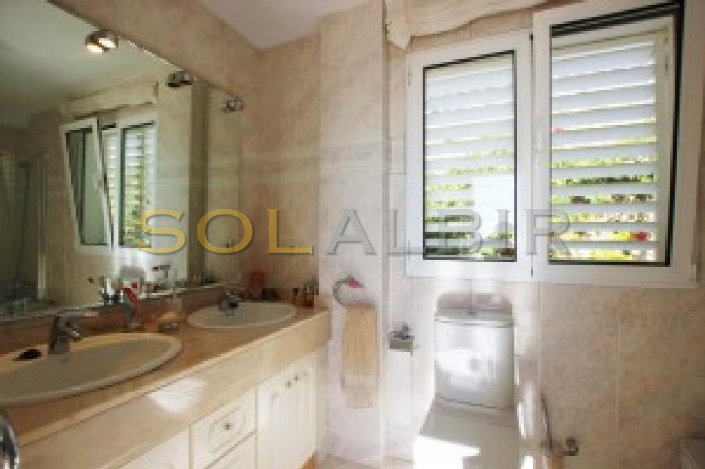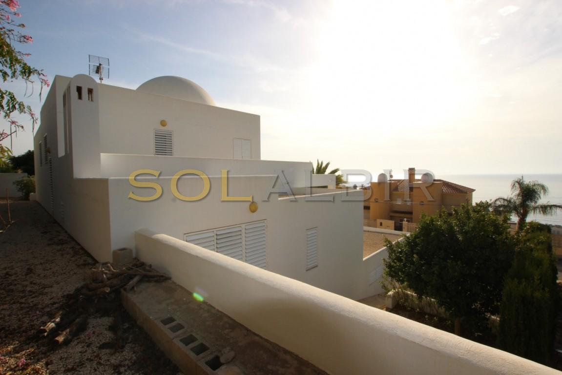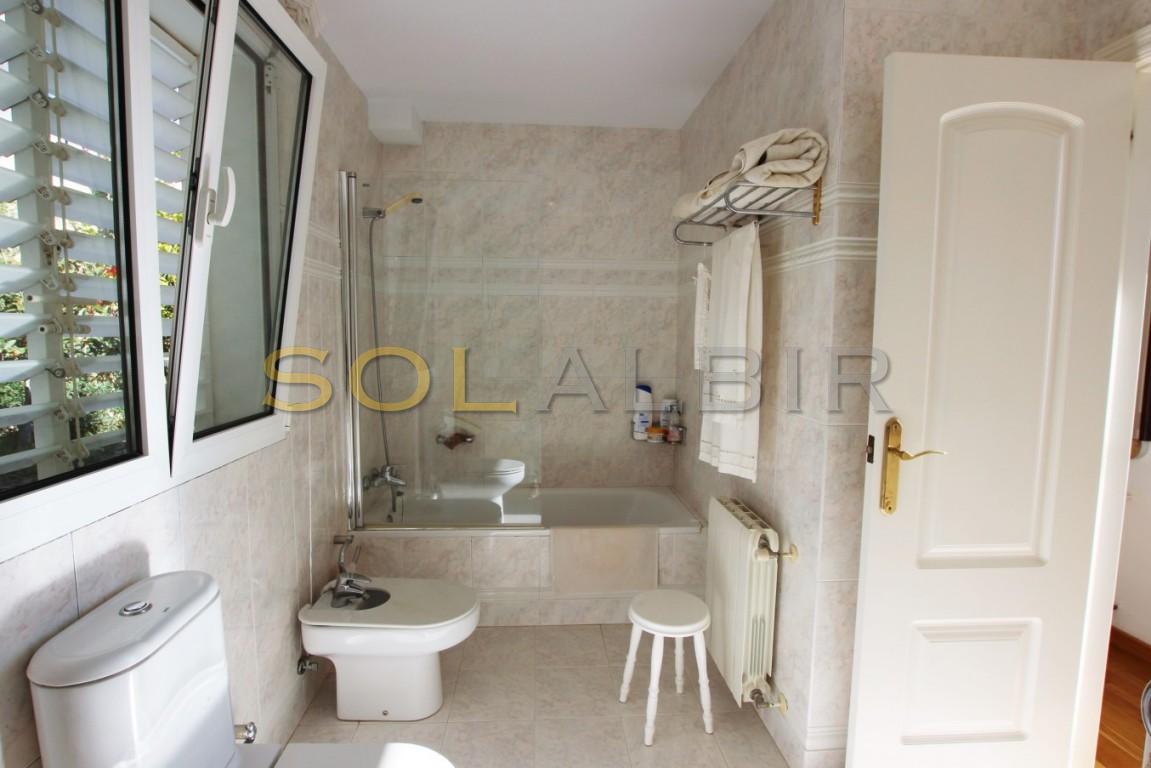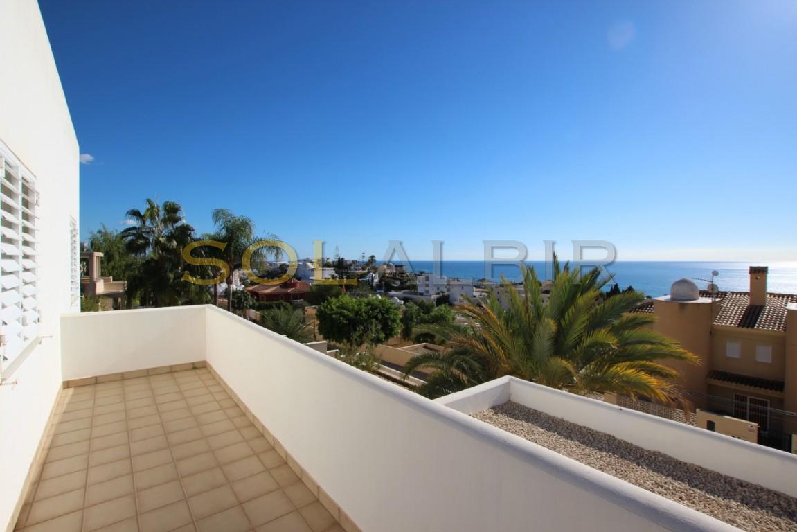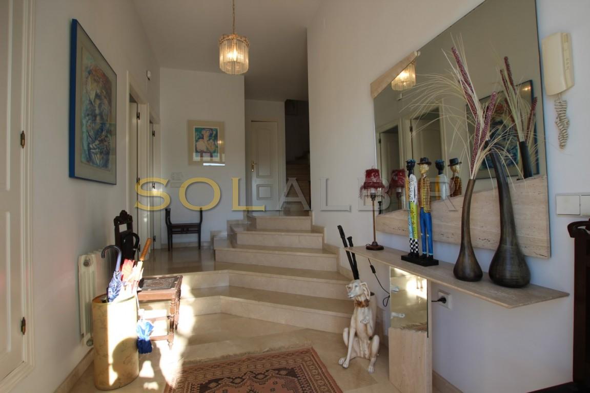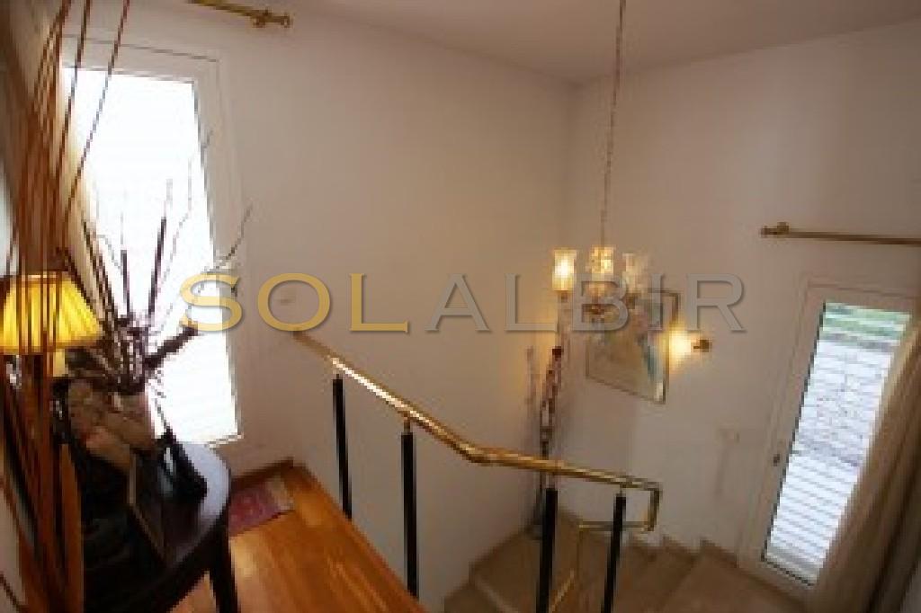 MODERNE MIDDELHAVSSTIL VILLA MED PANORAMAUDSIGT !!!! En eiendom bygget i 1997, av eieren - for seg selv! Gangavstand fra ulike vakre strender. En kilometer til nærmeste butikk og restaurant. 2,5 km til den vakre gamlebyen og strandpromenaden i Villajoyosa. En høy kvalitet eiendom med mange muligheter. Fra den højtloftede entrè er der adgang til: et gjestetoalett, et separat kjøkken med vaskerom, et kontor/soverom, en TV salong/soverom og en stor stue, som har en biblioteks afdeling med peis. Fra stuen og TV salongen er det utgang til terrasse med utsikt over bassenget, hagen og sjøen. Kjøkkenet har direkte tilgang til en sørøst vendt terrasse. Hele stueetagen har marmorgulv, med unntak av kjøkken og bad. I første etasje er to store soverom som deler et bad. Og så . . . master soverommet med garderobe korridor, bad én suite og en privat solterrasse. Første etasje har parketgolv bortsett fra badene. Fra gangen i første etasje du kommer til en stor solterrasse med panoramautsikt. Ulike muligheter for at udvidde eller overdække denne terrasse. På bakkenivå, ved siden av en to-bil-garasje, er yderligere et rom, som kan brukes som soverom, kontor eller bod. Hage med Middelhavet planter, naturlig gress og noen frukttrær. Gode oppbevaringsmuligheter i et stort rom under huset. Her ligger også maskineriet for bassenget og gassolje tank for sentralfyr. En klassisk moderne presentabel eiendom i god stand og med perfekt beliggenhet.