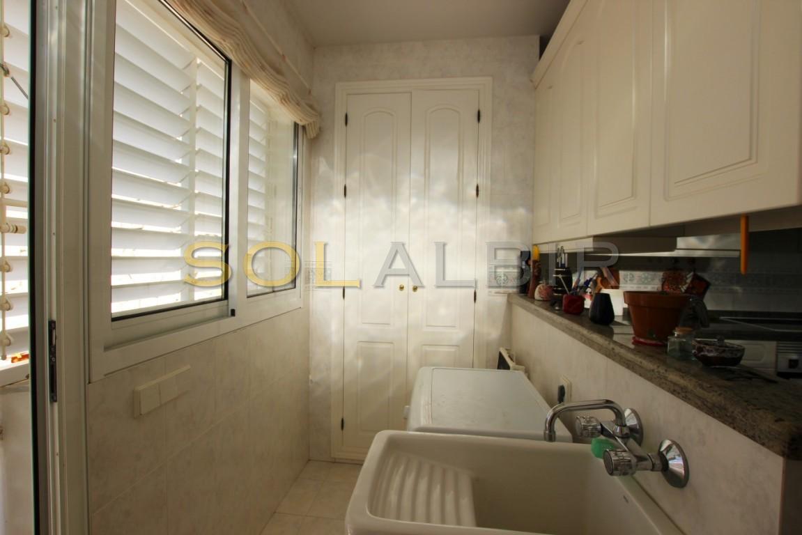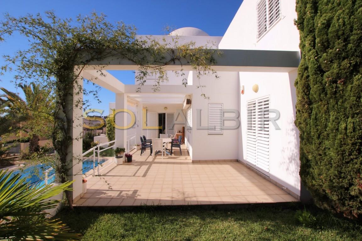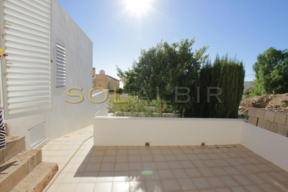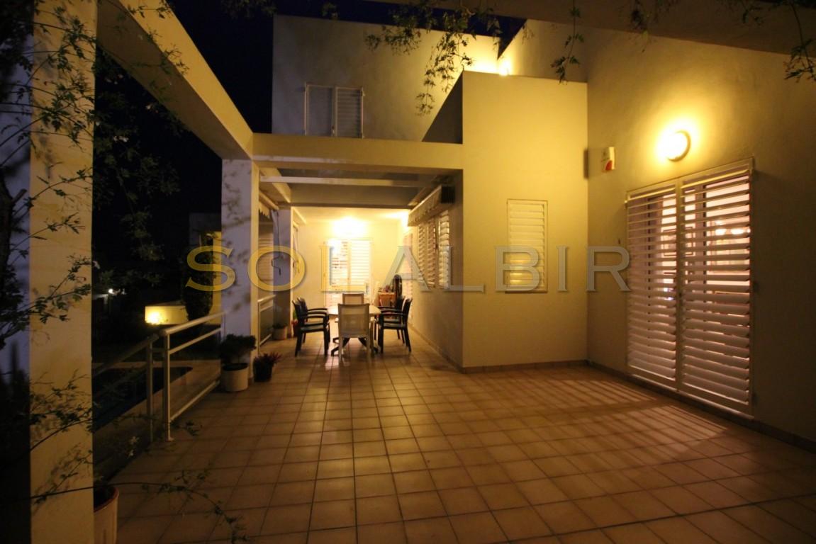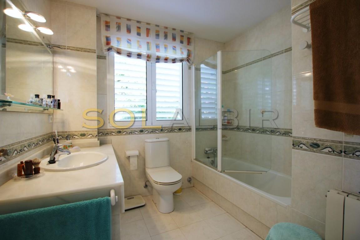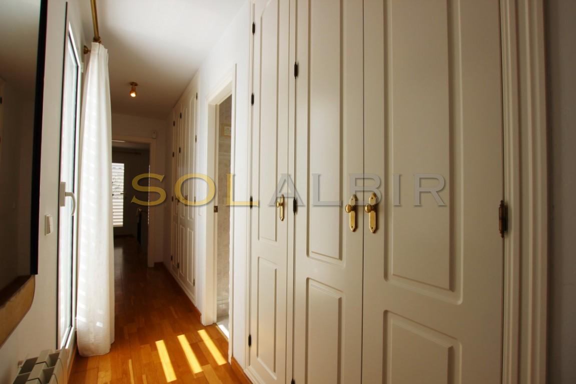 MODERNE MIDDELHAVSSTIL VILLA MED PANORAMAUDSIGT !!!! En eiendom bygget i 1997, av eieren - for seg selv! Gangavstand fra ulike vakre strender. En kilometer til nærmeste butikk og restaurant. 2,5 km til den vakre gamlebyen og strandpromenaden i Villajoyosa. En høy kvalitet eiendom med mange muligheter. Fra den højtloftede entrè er der adgang til: et gjestetoalett, et separat kjøkken med vaskerom, et kontor/soverom, en TV salong/soverom og en stor stue, som har en biblioteks afdeling med peis. Fra stuen og TV salongen er det utgang til terrasse med utsikt over bassenget, hagen og sjøen. Kjøkkenet har direkte tilgang til en sørøst vendt terrasse. Hele stueetagen har marmorgulv, med unntak av kjøkken og bad. I første etasje er to store soverom som deler et bad. Og så . . . master soverommet med garderobe korridor, bad én suite og en privat solterrasse. Første etasje har parketgolv bortsett fra badene. Fra gangen i første etasje du kommer til en stor solterrasse med panoramautsikt. Ulike muligheter for at udvidde eller overdække denne terrasse. På bakkenivå, ved siden av en to-bil-garasje, er yderligere et rom, som kan brukes som soverom, kontor eller bod. Hage med Middelhavet planter, naturlig gress og noen frukttrær. Gode oppbevaringsmuligheter i et stort rom under huset. Her ligger også maskineriet for bassenget og gassolje tank for sentralfyr. En klassisk moderne presentabel eiendom i god stand og med perfekt beliggenhet.