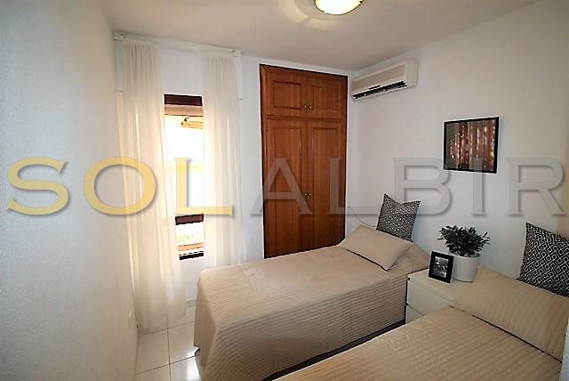 ALBIR - MODERNISED SOUTHFACING APARTMENT WITH SUPER LOCATION JUST 100 M FROM THE BEACH AND ALL AMENITIES! On the ground floor you'll find your own patio on 25 sqm. Beautiful apartment on the first floor with 2 bedrooms with a/c, bathroom with floorheating, kitchen fully equipped, cozy living room with acess to the southfacing balcony. Quiet sideroad from the main street/ cul de sac.