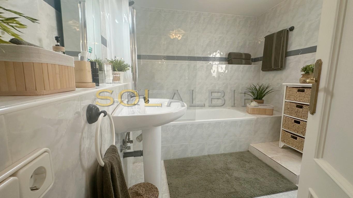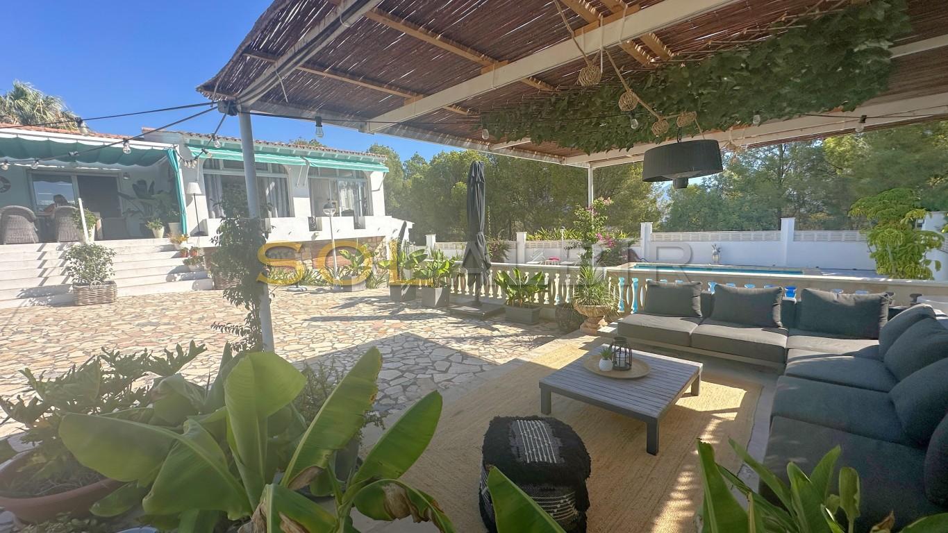 EXCLUSIVE TO SOLALBIR!!! Discover this surprisingly versatile family home, situated on a large plot in a quiet residential area, close to all amenities. 15 min from the famous beaches of Benidorm or the picturesque village of Altea, this home away from home offers an oasis of calm. It's spacious south orientated terrace offers beautiful views over the (mostly terraced) easy maintenance garden with it's 15x5m private pool and leads off into a cozy livingroom with a half open kitchen. A master bedroom with ensuite bathroom which opens unto a covered terrace and a second bedroom and bathroom complete this main floor of the villa. On the ground floor level we have a separate guestapartment with 2 bedrooms, a bathroom and an open plan kitchen in the living room. Besides a closed garage and extra storage room there is a huge private parking area, ideal for vans, mobile homes etc. Book your viewing with us today and immerse yourself in the charm of this mediterranean villa.
