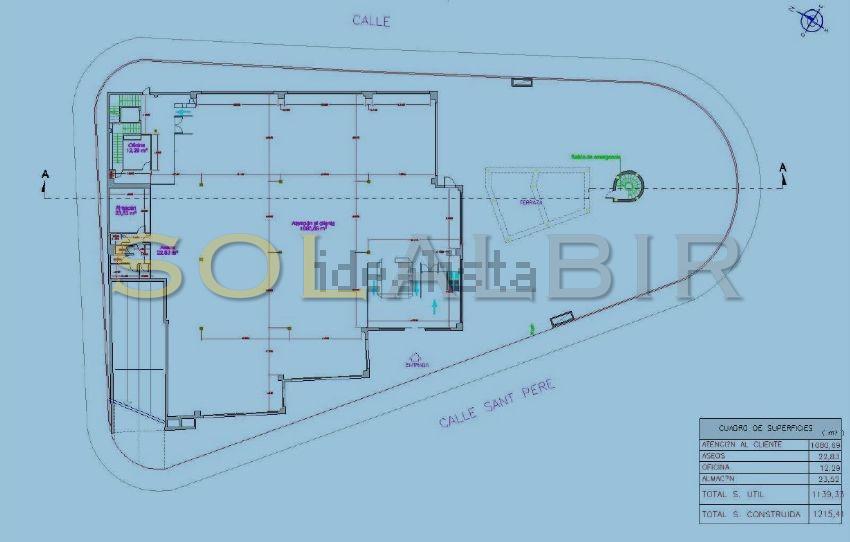 3541 useful m2, with three heights, with the extension of the complete block and bordering several streets.The distribution on the main floor consists of 1,269 m2 of open space for customer service and a covered exhibition area with access to the 1,25.0 m2 uncovered area.