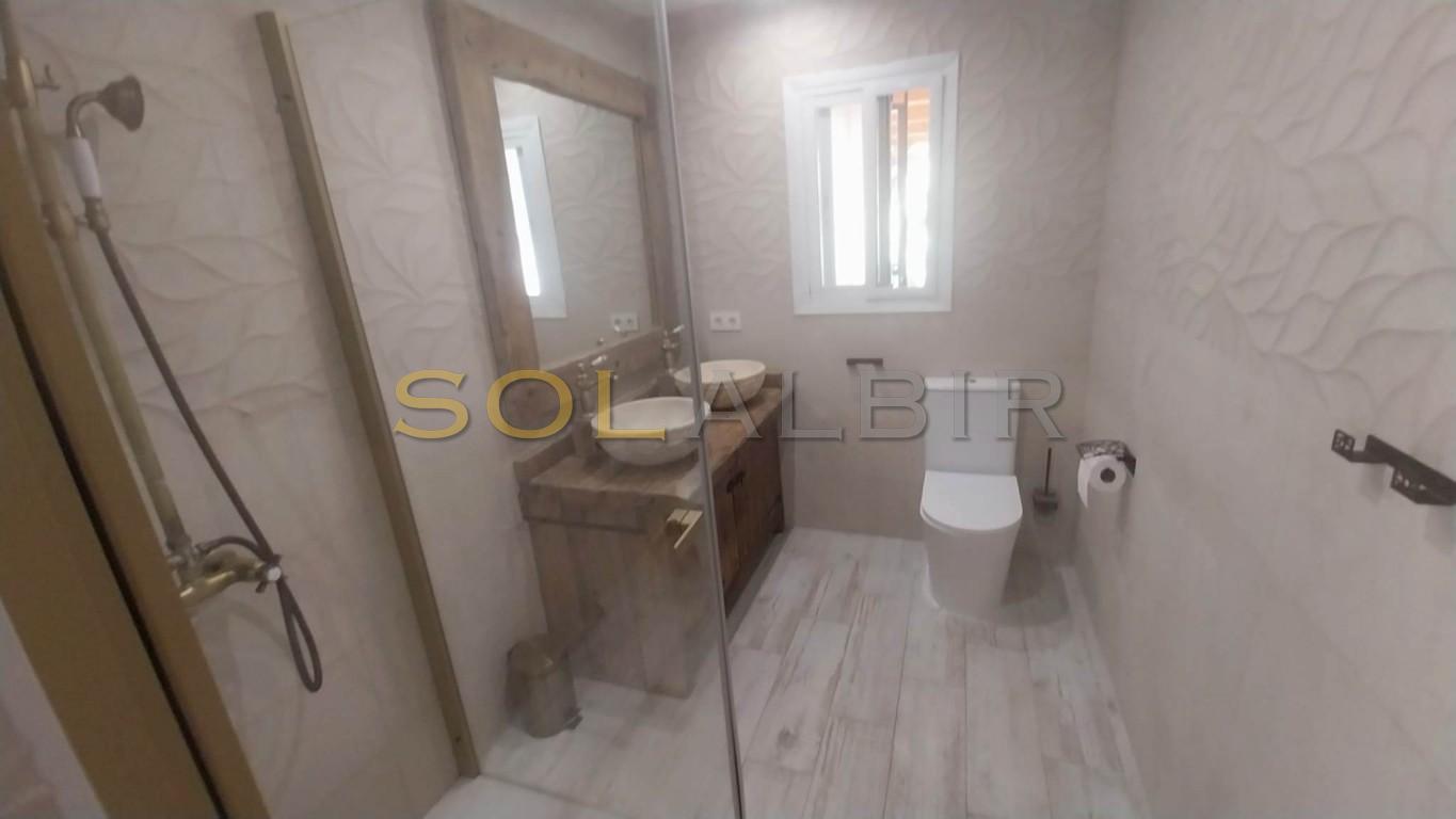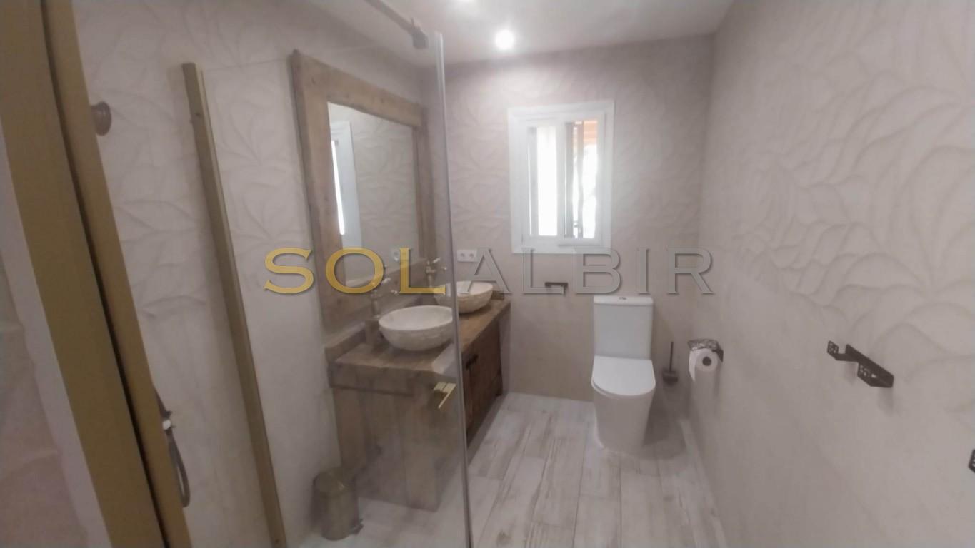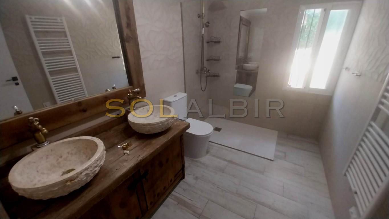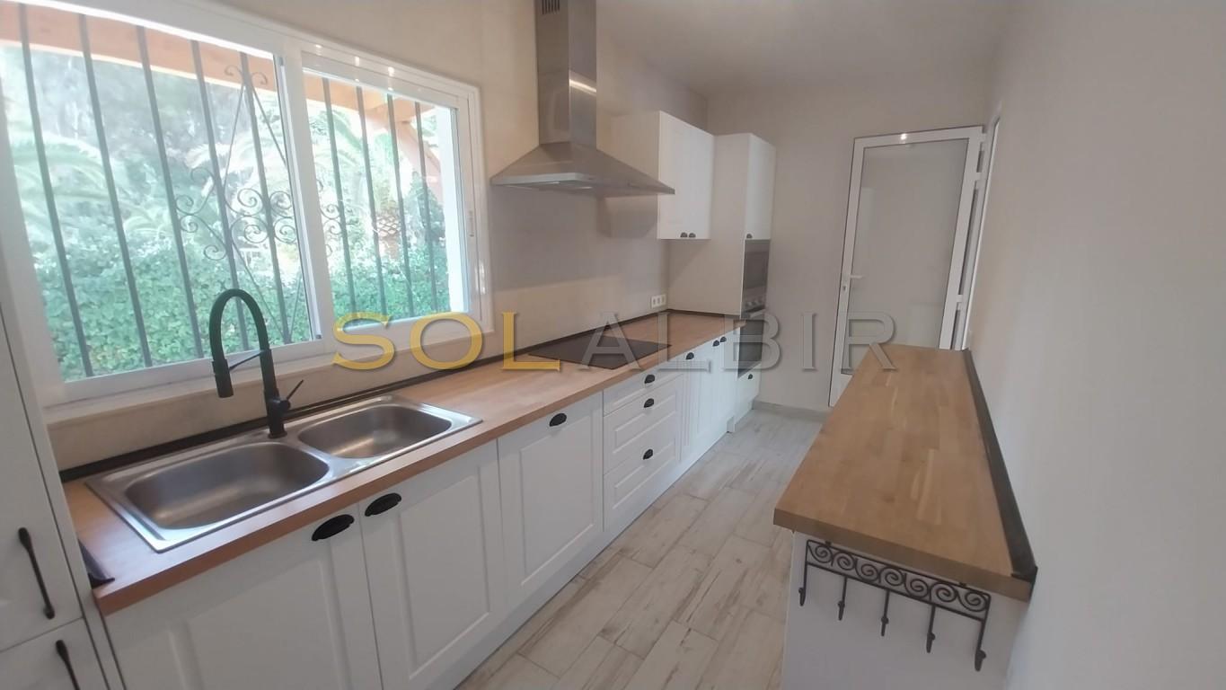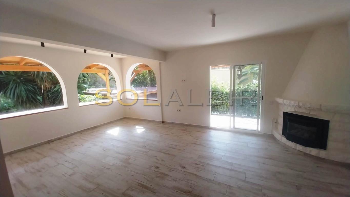 Completely renovated spacious villa in a quiet corner of Albir, very near all commodities i.e. shops, restaurants, supermarkets, medical center etc. Beautiful garden with private pool and outdoor lounge (furnished) with kitchen. The house itself is unfurnished with a large living room and kitchen. 3 bedrooms (one ensuite) on the upper level, and a further bedroom with bathroom on ground level, Carport for 2 cars.