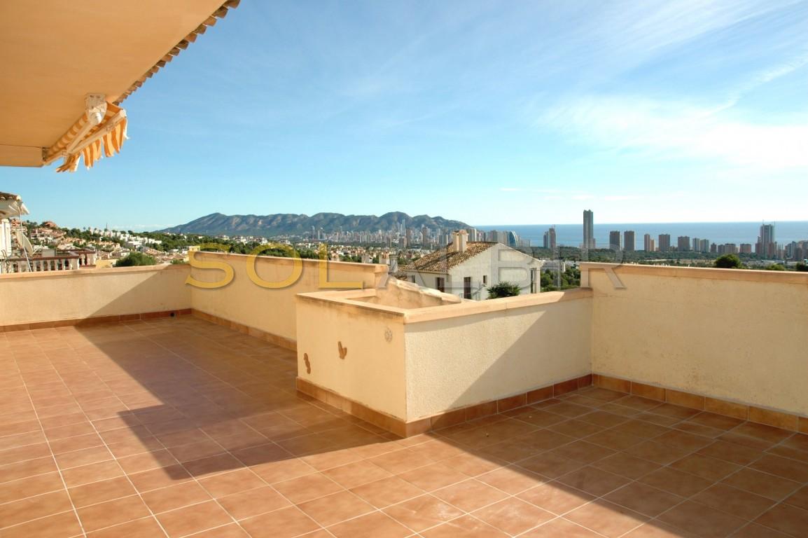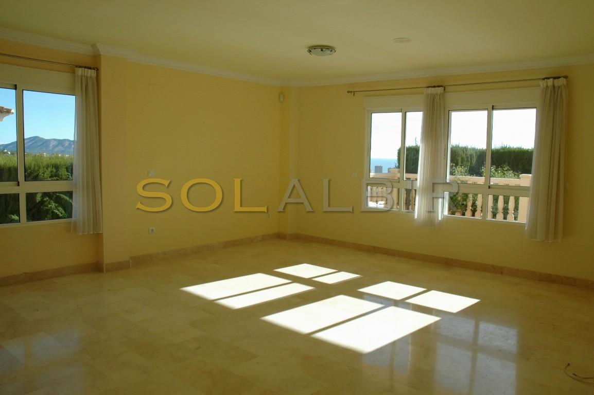 It is a very sunny villa as it faces south and has splendid sea views, situated below the Finestrat mountains. For more information or for a visit, please call our office.