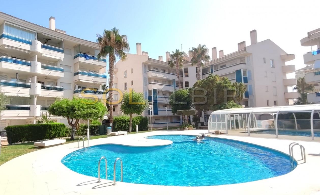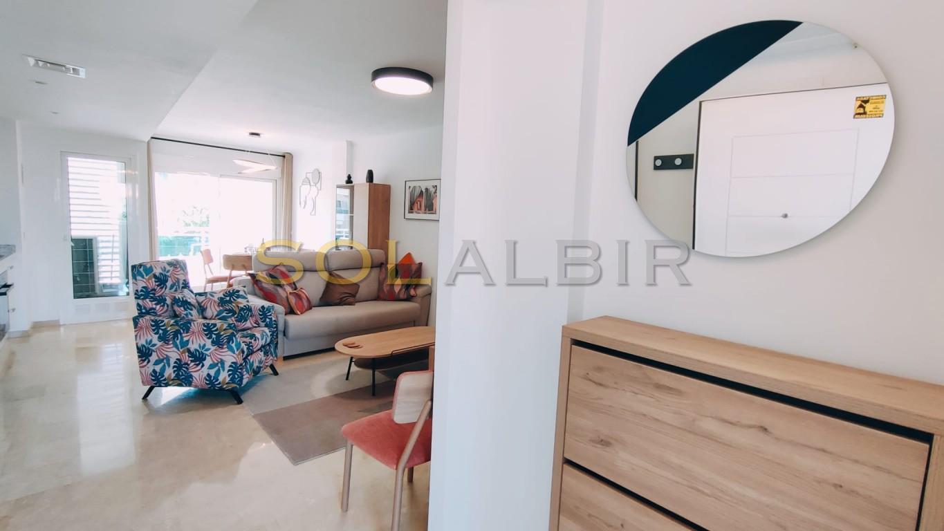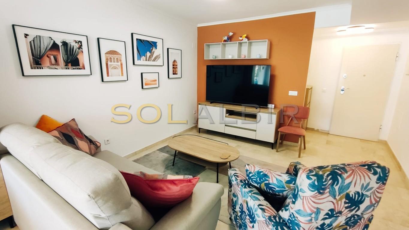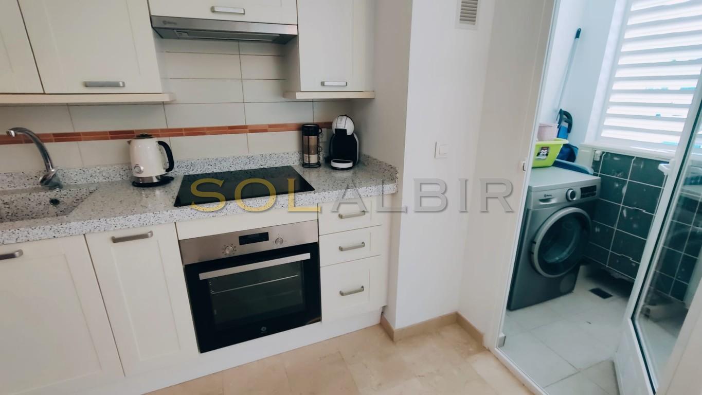 ELEGANT, MODERNISED AND SUNNY 2 BEDROOM APARTMENT WITH OPEN VIEWS. This is a unique apartment, aprox 93 m2 constructed area incl terrace, it was modernised in 2024 and has a bright and spacious living room with dining area and an open kitchen and exit to a sunny balcony with views to the mountain and pool. Is beautifully decorated and with good quality furnitures. There are 2 good size bedrooms each with spacious fitted wardrobes and 2 bathrooms with shower, one is ensuite. In the price is included a garage space and a storage room. The complex is one of the few in Albir with a heated pool and jacuzzi, and in addition there is an open pool, paddle tennis court and a play area for children. Is located very centrally in Albir, with a short walking distance to the beach, the golf court, shops, restaurants and public transport in Albir.