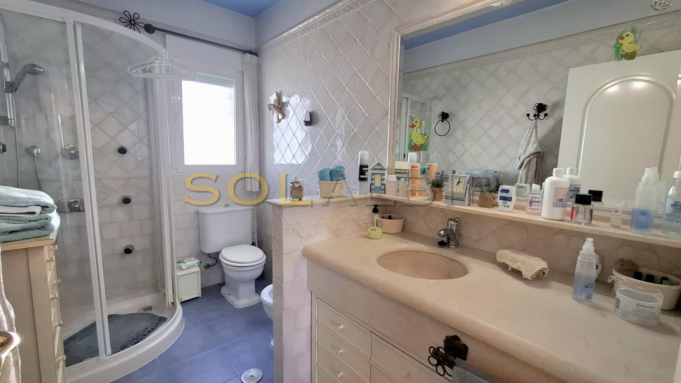 Spacious sunny villa in quiet residential area, near all mod cons. All on one level, this south orientated villa offers every comfort as well for permanent dwelling as holiday home. It's private pool (with outdoor shower) is set in an easy maintenance traditional mediterranean garden, with plenty of cozy sunny and/or shady spots, according to time of day and season. Inside we have a separate kitchen with utility/laundry room, a large living/dining room, a masterbedroom with ensuite bathroom and direct acces to the pool area. A further 2 double bedrooms (both with build in wardrobes) share an additional bathroom. Airconditioning and central heating (gasoil) provided in all rooms. An independant guesthouse with it's own bathroom is currently in use as a workshop, but can easily be reconverted. A good sized garage doubles as extra storage room and there is onsite parking for several cars. Come and book your private viewing with us today and discover your own bit of mediterranean paradise.