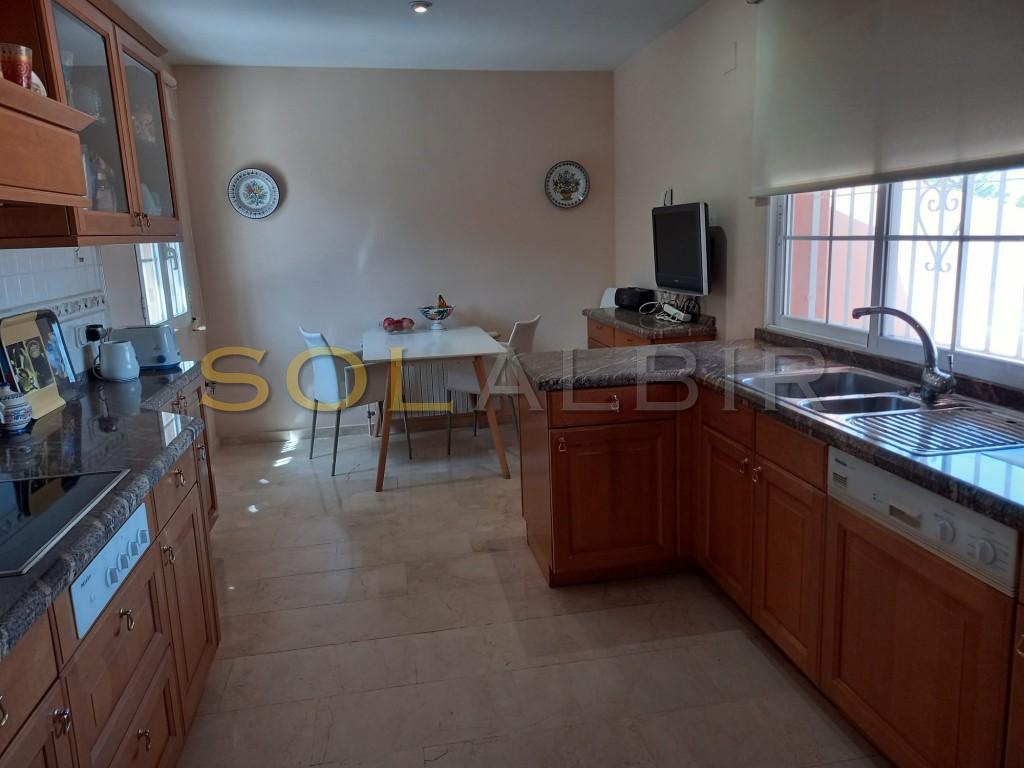 This is a 290 m² villa with a 530 m² plot. It has three bedrooms with fitted wardrobes, two full bathrooms, a fully equipped kitchen, a living-dining room and two covered terraces with access to the swimming pool. It has air conditioning, central heating with gas radiators, storage room, large garage, fireplace, barbecue and garden. It is located in a very good area of Albir, close to Abir beach and all necessary amenities. For more information or to arrange a viewing, please call our office.