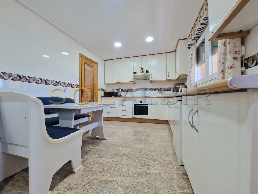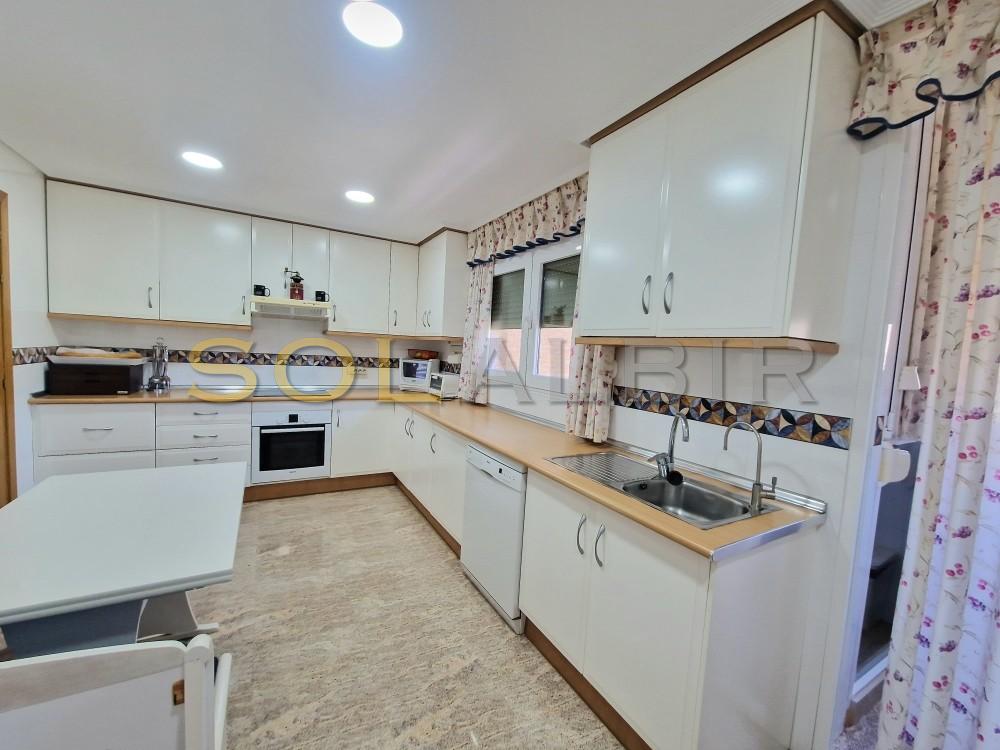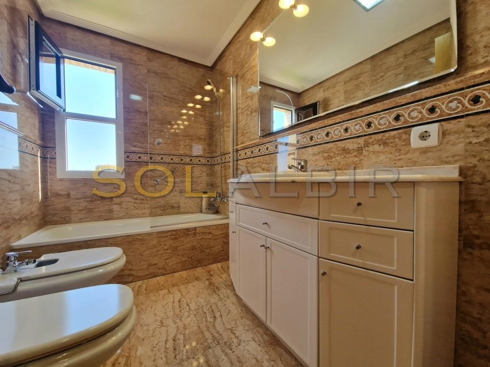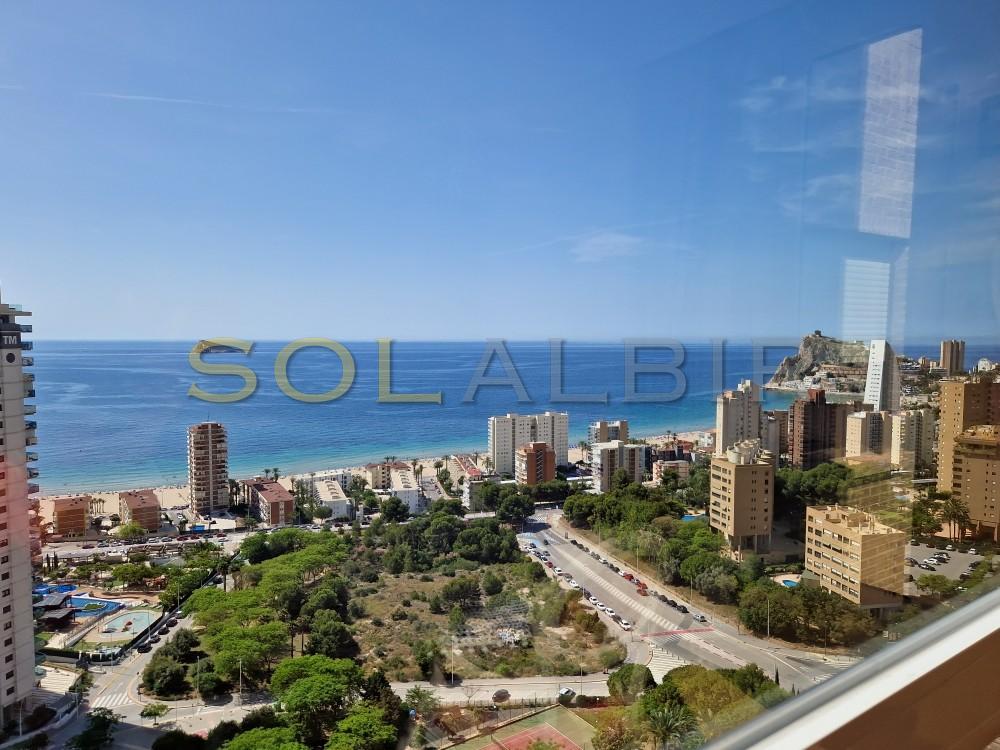Delux Apartment on Benidorm Beach. This absolutely exclusive property stands out for its spacious and comfortable design, with a surface area of 161 m², ideal as a first or second home, or even as an investment. It has 4 bedrooms (one en suite) and 3 bathrooms. All rooms, including the living room, are completely exterior and offer spectacular views of the sea, mountains, and city, creating a perfect setting for relaxation. The fully furnished and equipped kitchen features an induction cooktop, oven, microwave, dishwasher, refrigerator, and washer-dryer. It boasts mountain views and a functional laundry area. The home features ducted air conditioning (hot/cold), impeccable electric awnings, two-tone metalwork (white inside and brown outside) with tilt-and-turn windows, wood-effect ceramic flooring, a security door, a safe, and a television. Domestic hot water is produced using city gas. In addition, the built-in cabinets distributed throughout the rooms provide optimal storage space The development offers excellent common areas designed for the well-being and enjoyment of its residents: extensive gardens with natural grass and trees, a large lake-style pool, a tennis court, a sauna, a gym equipped with various machines, and a children's area. The spacious outdoor parking lot is equipped with video surveillance cameras for added security. Located just a 7-minute walk from the beach, with all amenities and public transport within reach, this property is ideal for those who value exclusivity, style and a high quality of life.