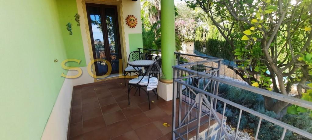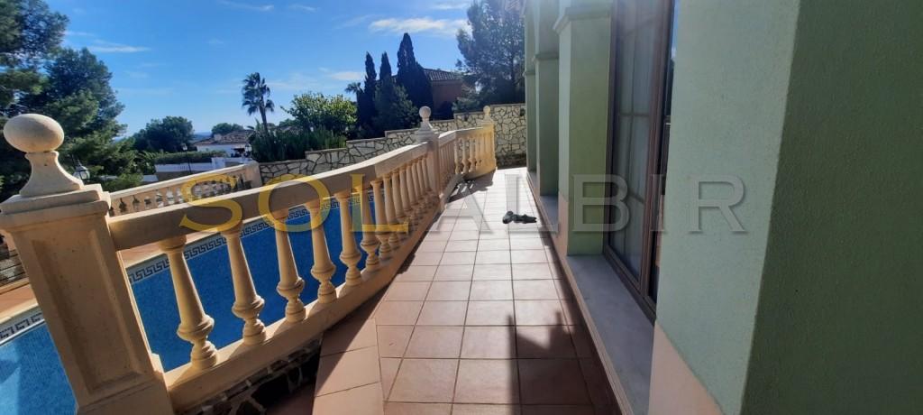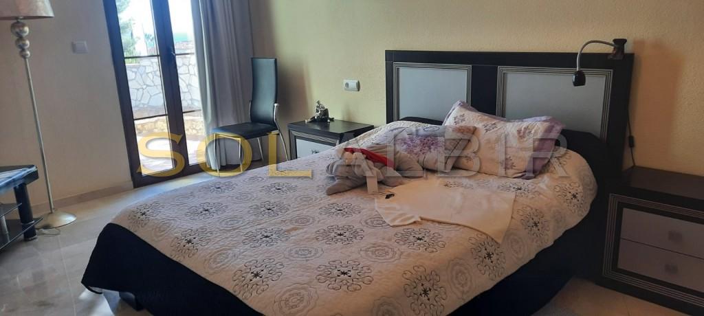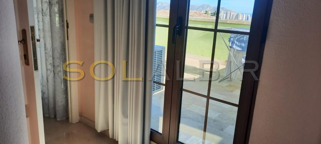 Mediterranean-style villa with sea and mountain views for sale in Golf Bahia, Finestrat. It is a three-storey villa with a swimming pool and garden. It is a 313 m² villa with a 548 m² plot. It was built in 1996 and is in very good condition, ready to move into. It has three floors. On the main floor there is a spacious living room with a fireplace and access to the pool and garden, a dining room, a large fully equipped kitchen and a guest toilet. On the first floor are the two bedrooms, both with en-suite bathrooms, walk-in wardrobes, fitted cupboards and access to a large terrace with splendid views of the sea and mountains. In the basement there is a garage, a room, a gym and a wine cellar, as well as a workshop and a storage room. It could be converted into a guest apartment. The garden has fruit trees and beautiful plants. In front of the villa there is a covered terrace, a long corridor and the swimming pool. It has hot water and heating with electricity and gas. The terrace on the first floor has an awning and is very spacious and sunny. It is a very bright villa as it faces south. It is located in a privileged area, with security and proximity to all necessary services. It has easy access to the motorway to go to Valencia or Alicante. For more information or to arrange a viewing, please call our office.