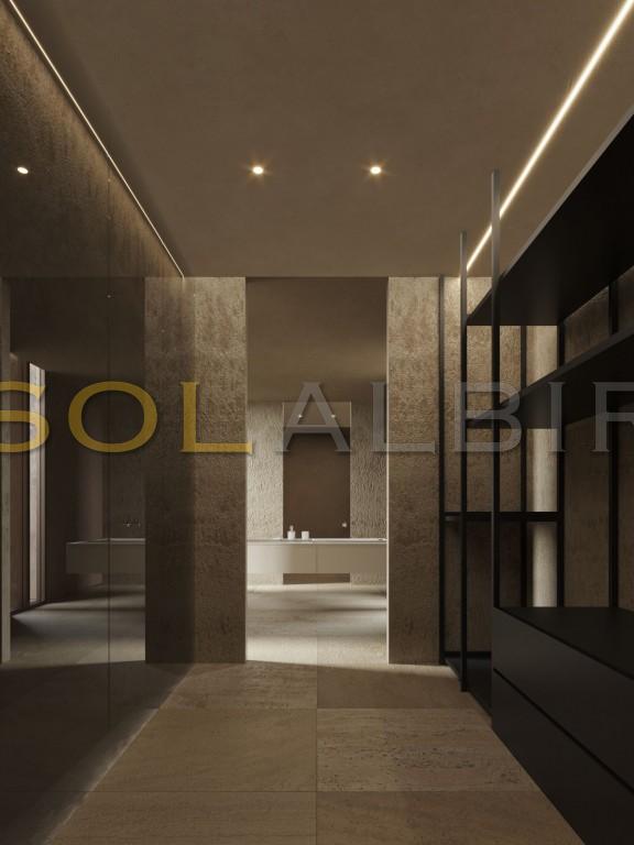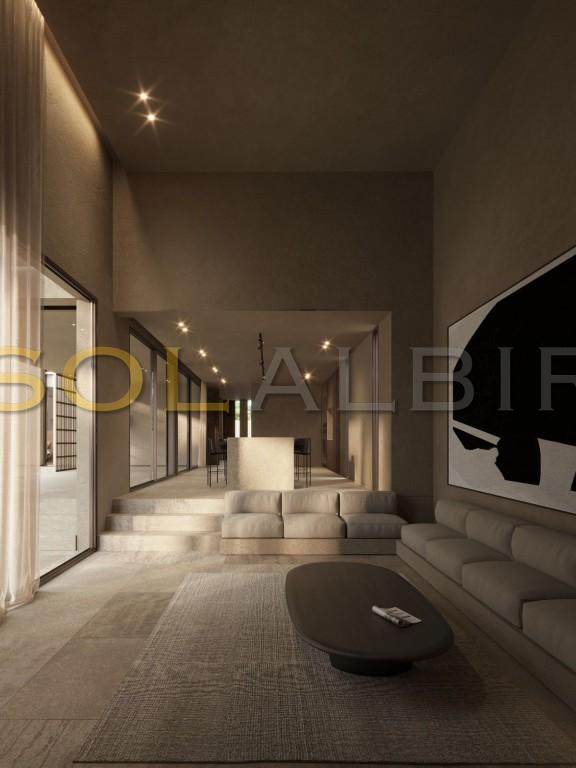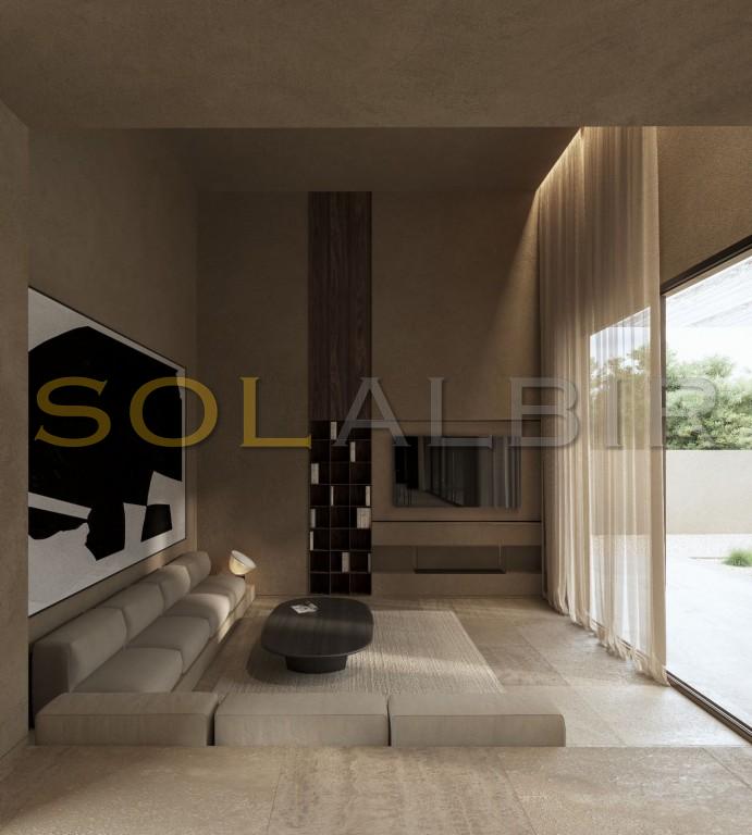 In this house, an interior design, lighting and furniture selection project, has been developed. A sober design is proposed in accordance with the architecture, that surrounds it. The identity of the exterior, is captured through the use of natural materials, such as dark oak wood, and travertine.The pieces of furniture merge with the architecture, integrating the furniture into the wallor creating it as a brick, so that the whole is read as a whole.