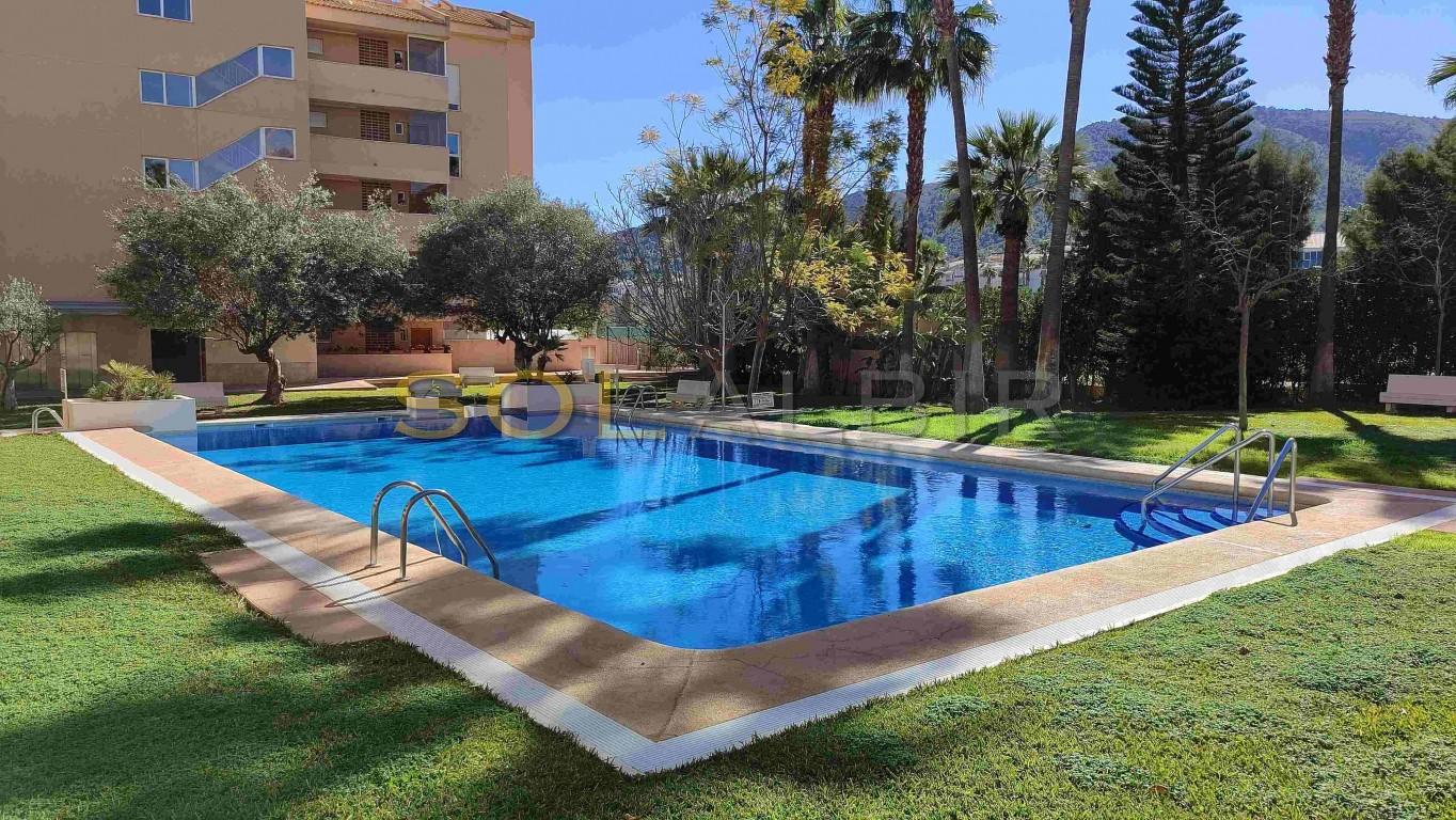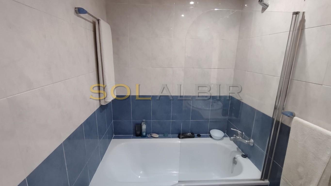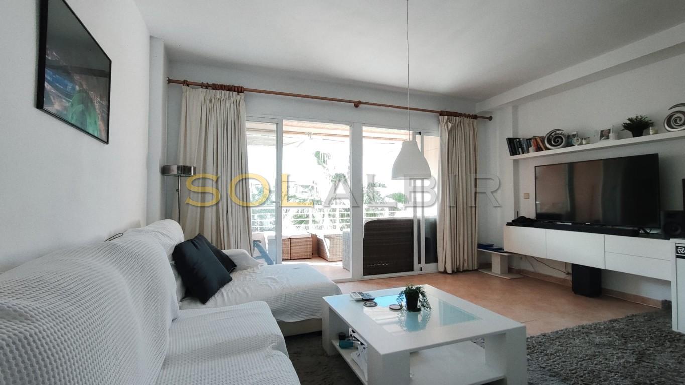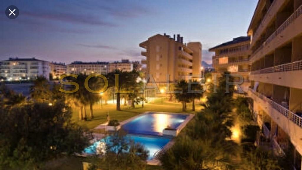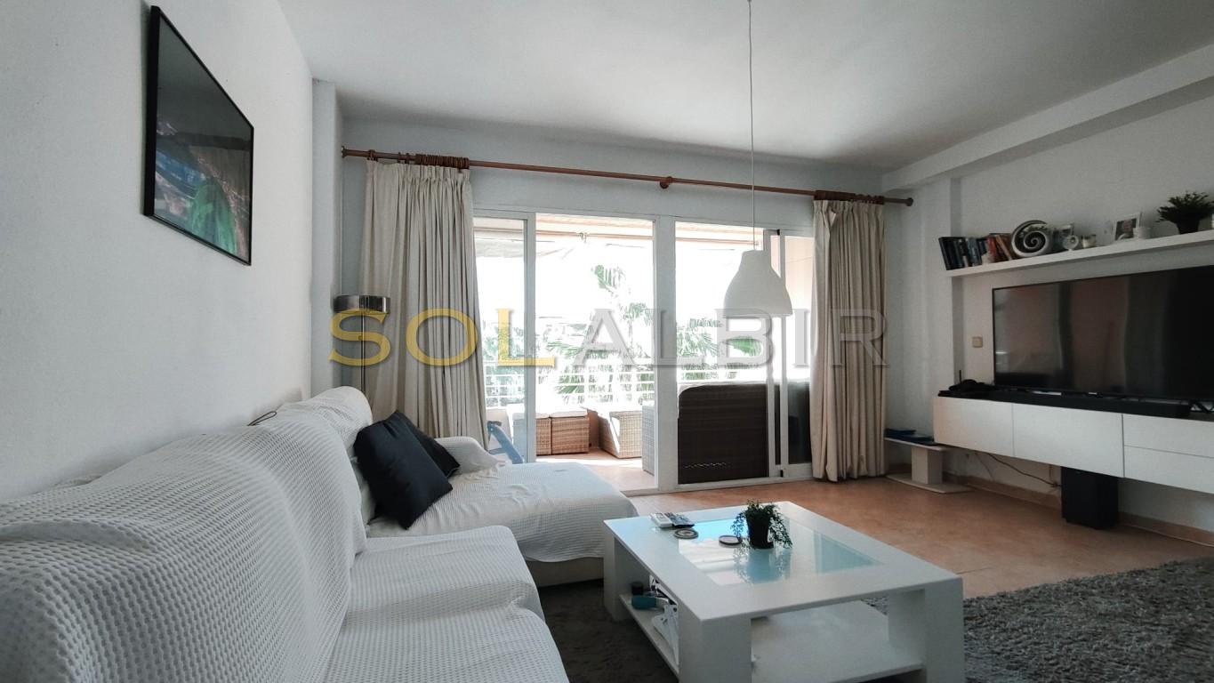 SUNNY DUPLEX TOPFLOOR APARTMENT IN ATTRACTIVE URBANISATION CENTRALLY LOCATED IN ALBIR. Fantastic possibility to get a spacious and charming topfloor apartment with a large sunny roof terrace of aprox 36 m2 with beautiful views and many possibilities. On the main floor of aprox 63 m2 there is a spacious and bright living-dining room with exit to a large sunny terrace with views to the communal garden with pool and the mountains, there is a semi-open kitchen, and at the main floor is 1 bedroom and 1 bathroom. The property is located in a very attractive complex, which offers a community pool, paddle courts and play area. A parking space in the basement is included in the price. Is located in short distance to the sea, restaurants, shops and public transport.