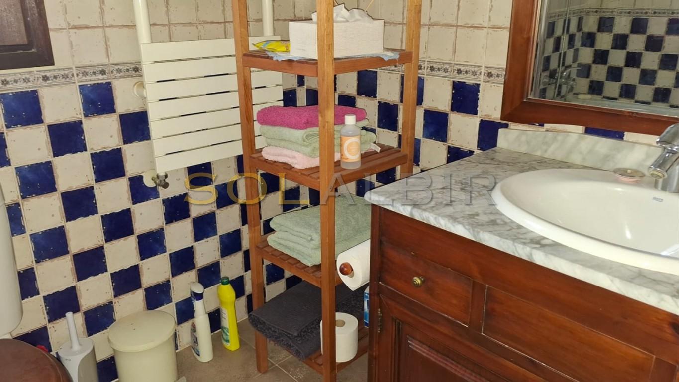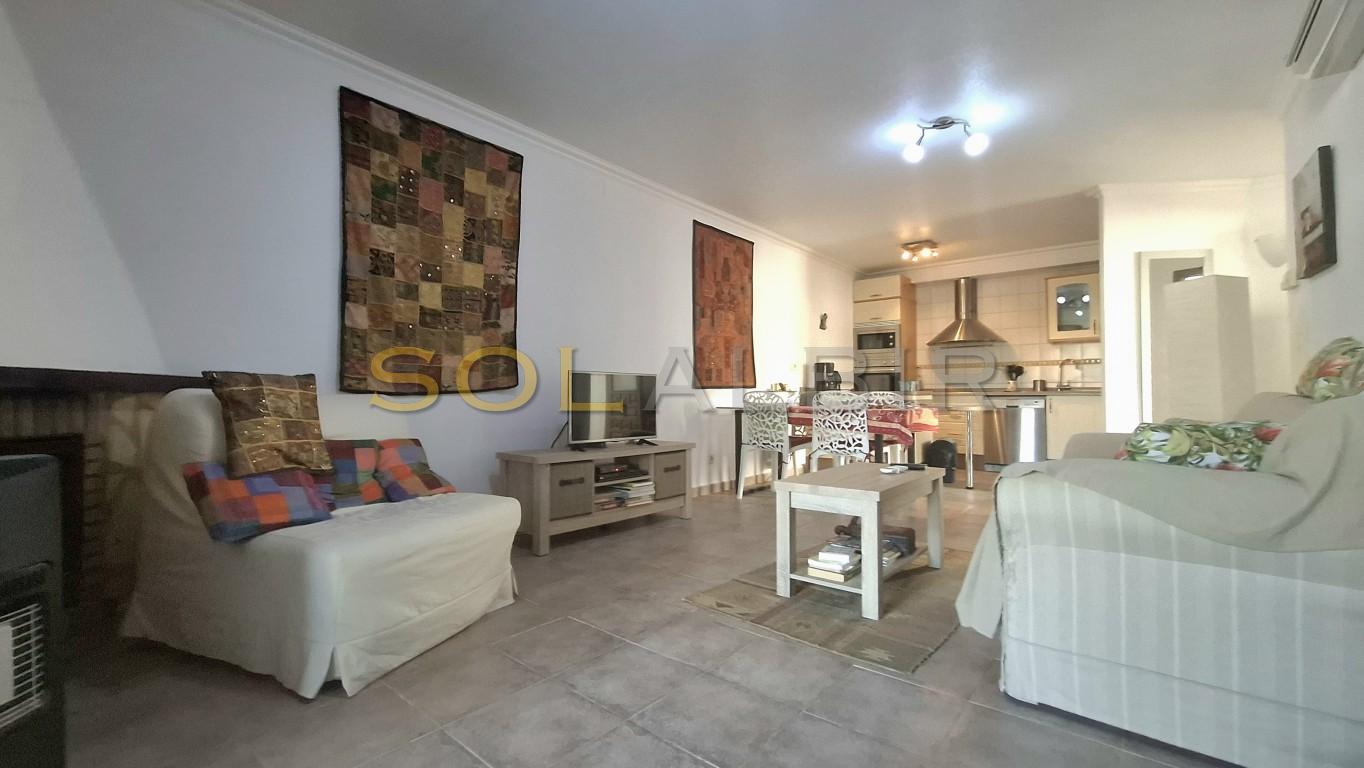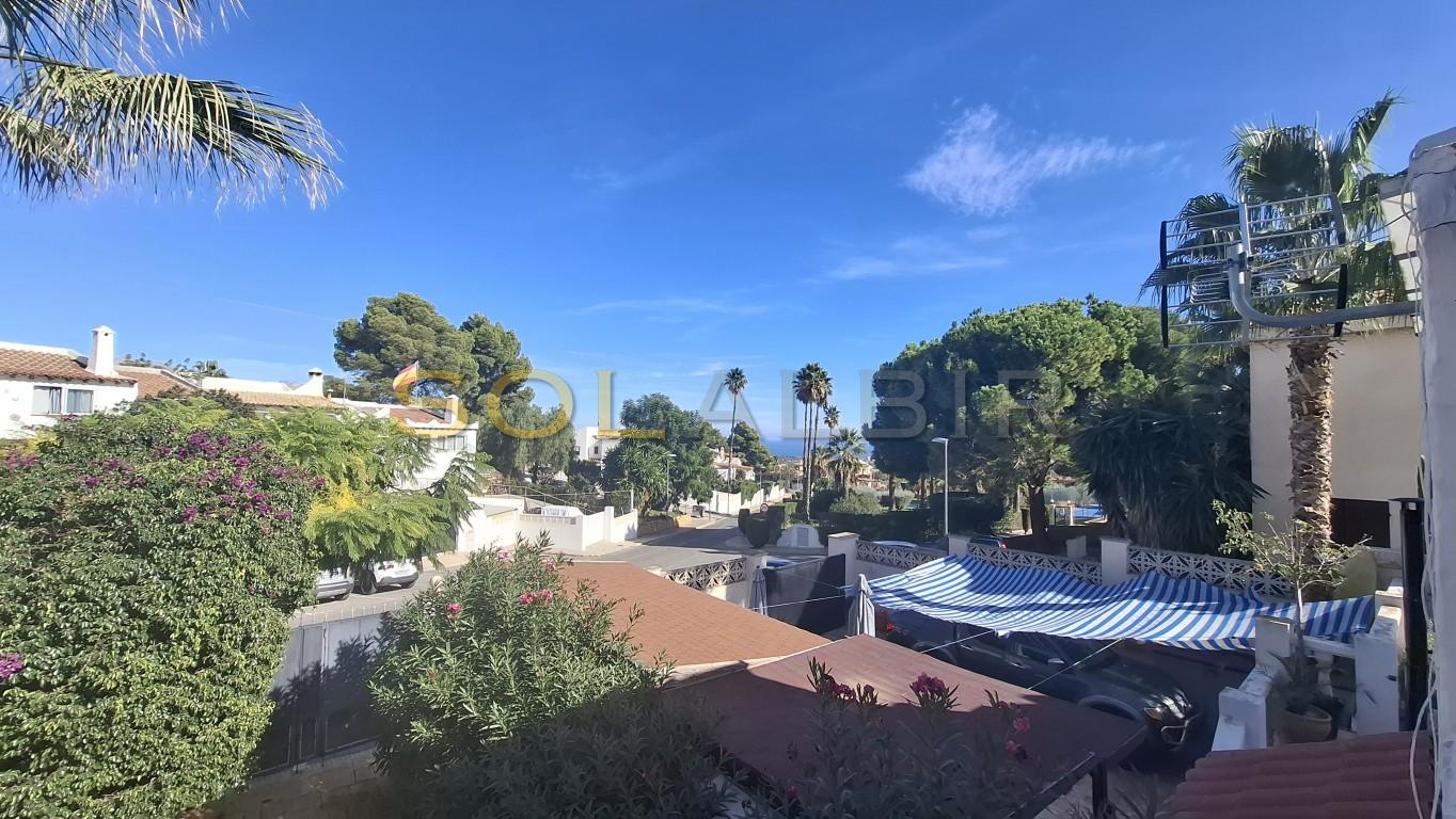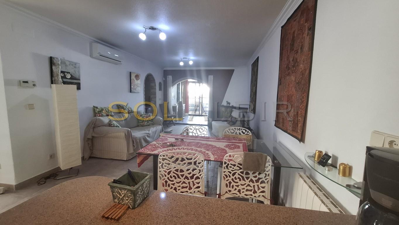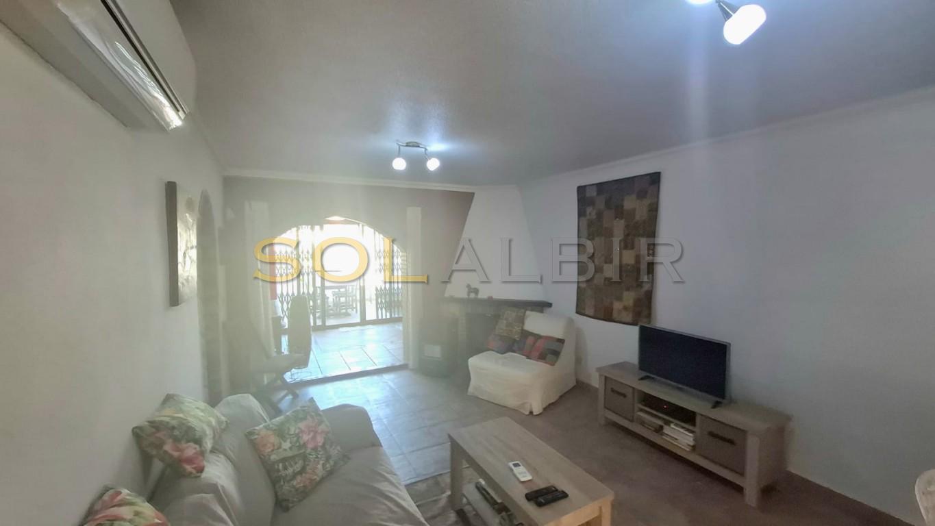 Lovely townhouse in the popular urbanisation of Nou Espai I in La Nucia. Located on a corner plot with entrances from 2 different roads, with the lower part offering an entrance directly from street level. This gives acces to the garage, currently in use as storage. The basement area can easily be converted into separate guest accomodation. On the upper level we have the house itself featuring a spacious open plan kitchen (with separate utility room) and living room, with acces to a terrace with wonderful seaviews. One bedroom has an ensuite bathroom with shower, there is another bathroom with bath and a second bedroom. This 2 bedroom townhouse offers plenty of scope for either permanent residency or as a holiday home. Especially as right next to the house we have an extensive green area with beautifully maintained gardens and a community pool with children's pool an play area. Come find your new home and book your visit with us today.