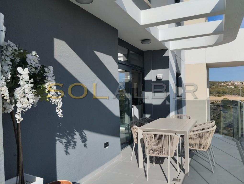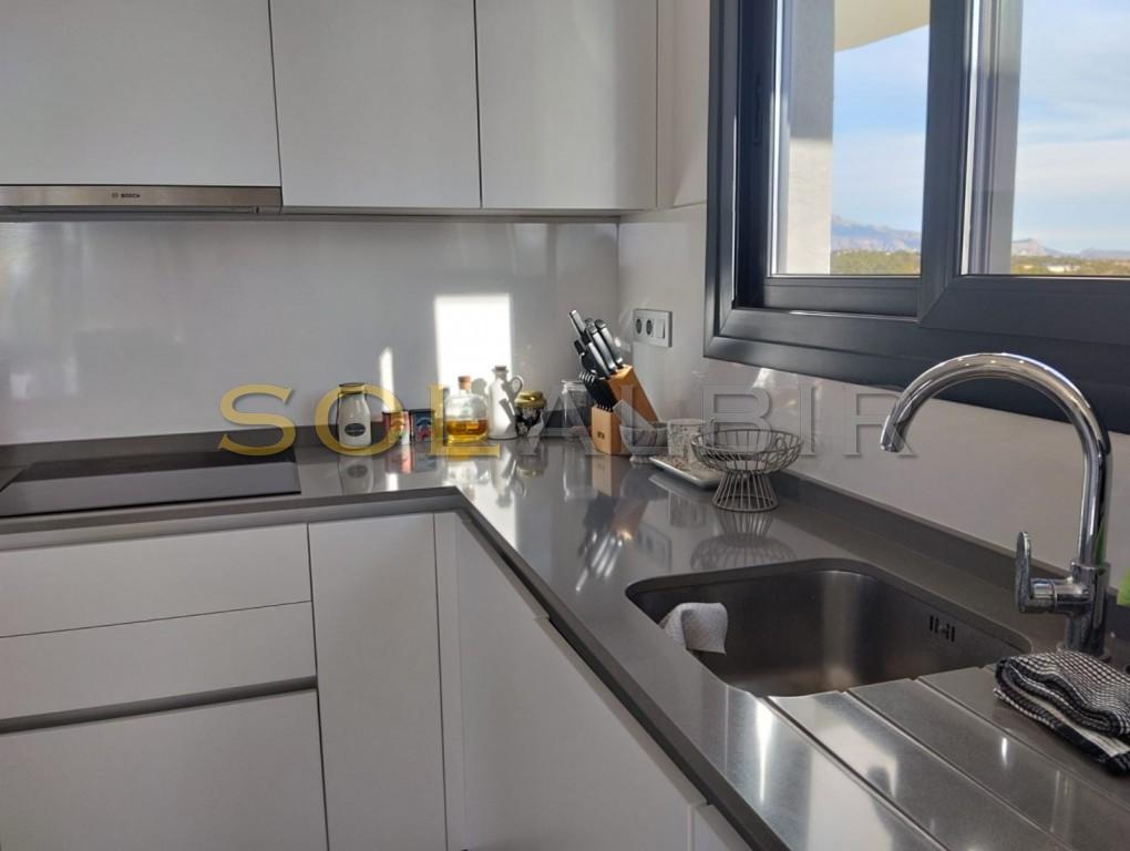 It has easy access to the N332 and the motorway to Alicante or Valencia. The area is very quiet with a golf course and green spaces. In the flat, you can enjoy the silence, the views and the sun, as well as all the comforts it offers. It has high-quality furniture, excellent windows and much more. It has two lifts, long patios and areas for walking. The building has 24 one, two and three-bedroom flats and is modern and attractive with excellent terraces and splendid views.