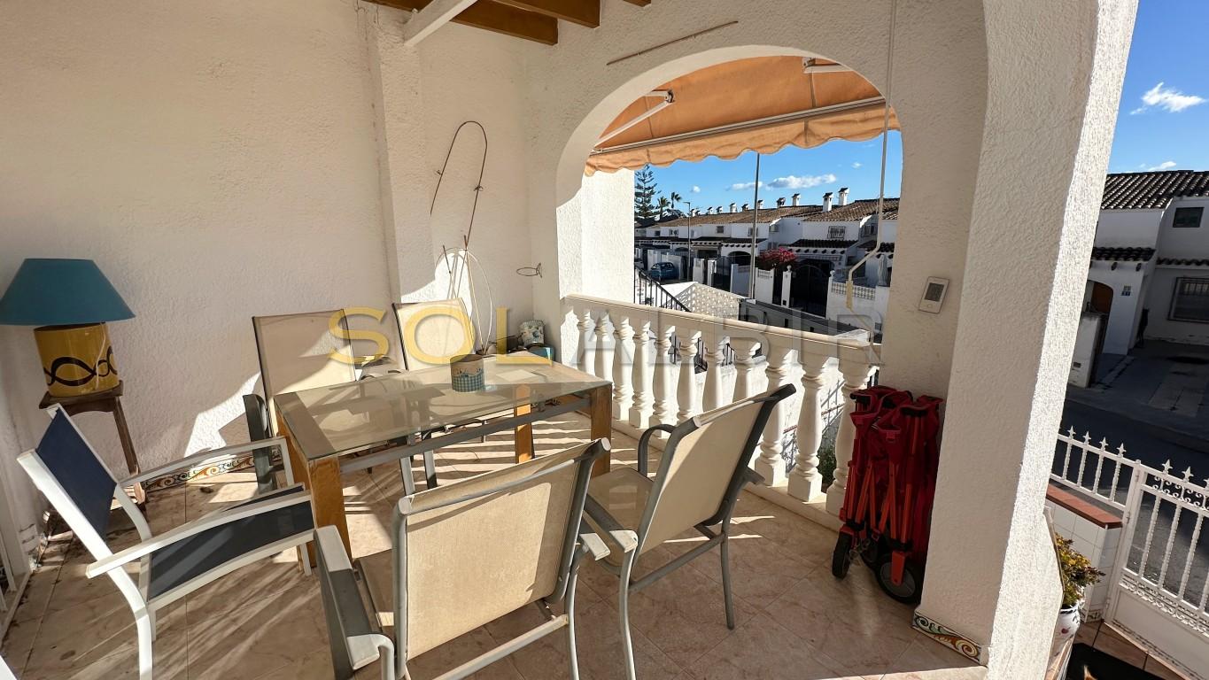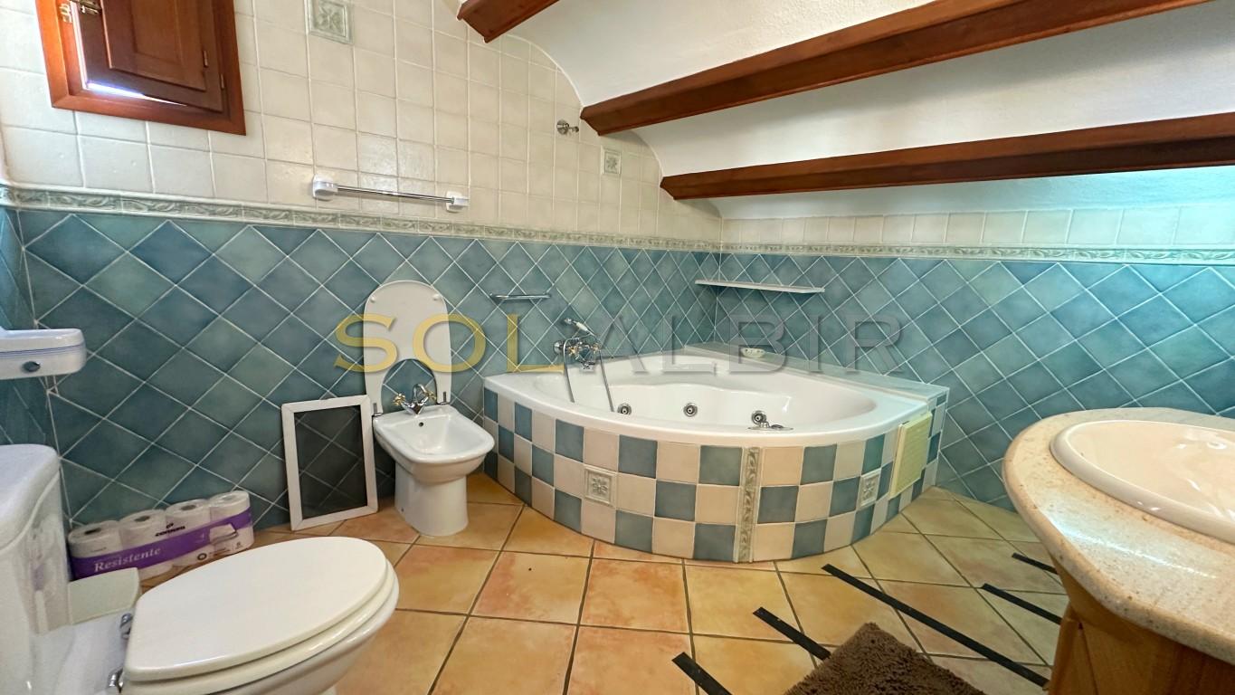 If you want to have a place in the sun AND a regular income, this is your opportunity! On 500m from ALBIR you find this detached house with a guest apartment. The main house has on ground floor level, a south facing terrace, an ample living - dining room with chiminea, a nice size kitchen with separate laundry place connected to the garden. Also a bedroom and bathroom. On the first floor there is one big bedroom ( Before there were two) with an en-suite bathroom. A terrace with sea view. On the street level, there is a guest apartment with living room/kitchen, Bedroom and ample bathroom. The rent is 600€/month. The good tenant likes to stay, but off course will go when you want. Next to this apartment there is a garage. There is a community pool available. Call for a visit to this canguru house .
