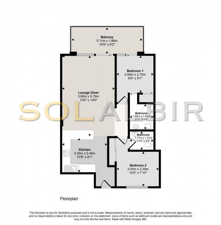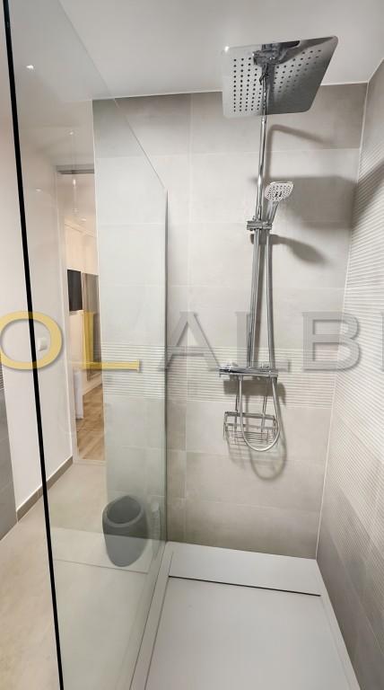 Originally designed with two bedrooms and one bathroom, the apartment has been cleverly adapted to include an additional shower room, meaning both bedrooms now benefit from en-suite facilities. The master bedroom opens onto a spacious 10 m² south-facing balcony, which is also accessible from the living room—perfect for relaxing and enjoying the sun.