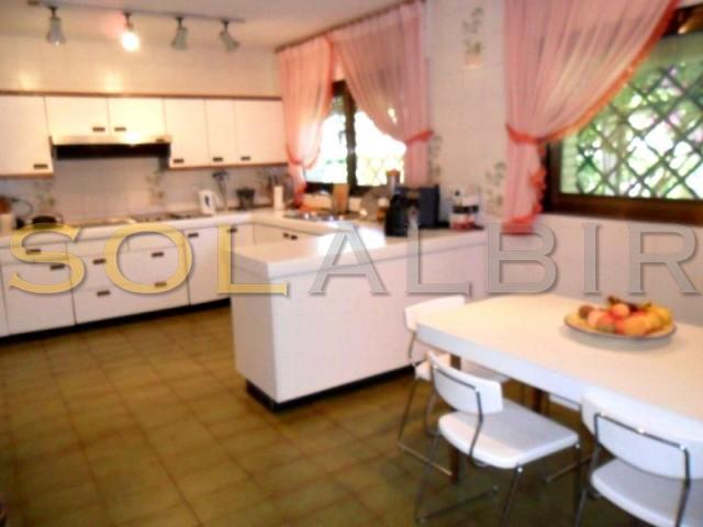 FANTASTIC VILLA WITH LARGE POOL, TENNIS COURT, GUEST HOUSE AND BEAUTIFULL GARDEN. The property is located just minutes from the beach, and very close to all amenities. The main house has five bedrooms, three bathrooms, a toilet, large kitchen with dining area, separate dining room, large living room with fireplace and covered terrace.The property also has a large covered terrace on the pool area, and a large plot with fruit trees and orchard.