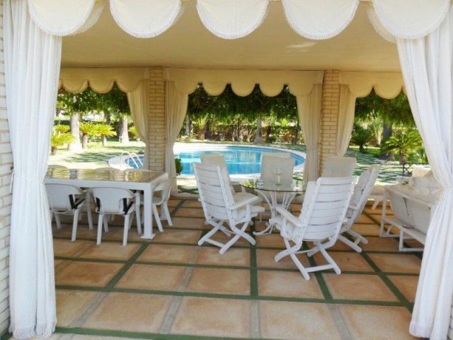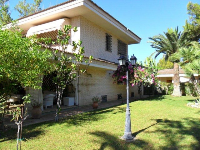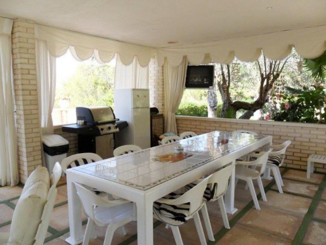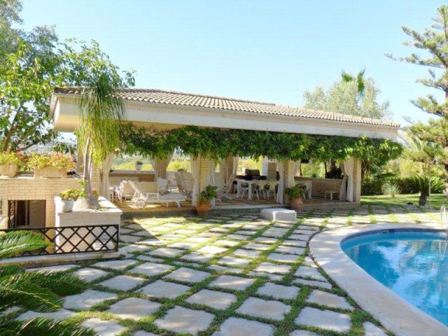 FANTASTIC VILLA WITH LARGE POOL, TENNIS COURT, GUEST HOUSE AND BEAUTIFULL GARDEN. The property is located just minutes from the beach, and very close to all amenities. The main house has five bedrooms, three bathrooms, a toilet, large kitchen with dining area, separate dining room, large living room with fireplace and covered terrace.The property also has a large covered terrace on the pool area, and a large plot with fruit trees and orchard.