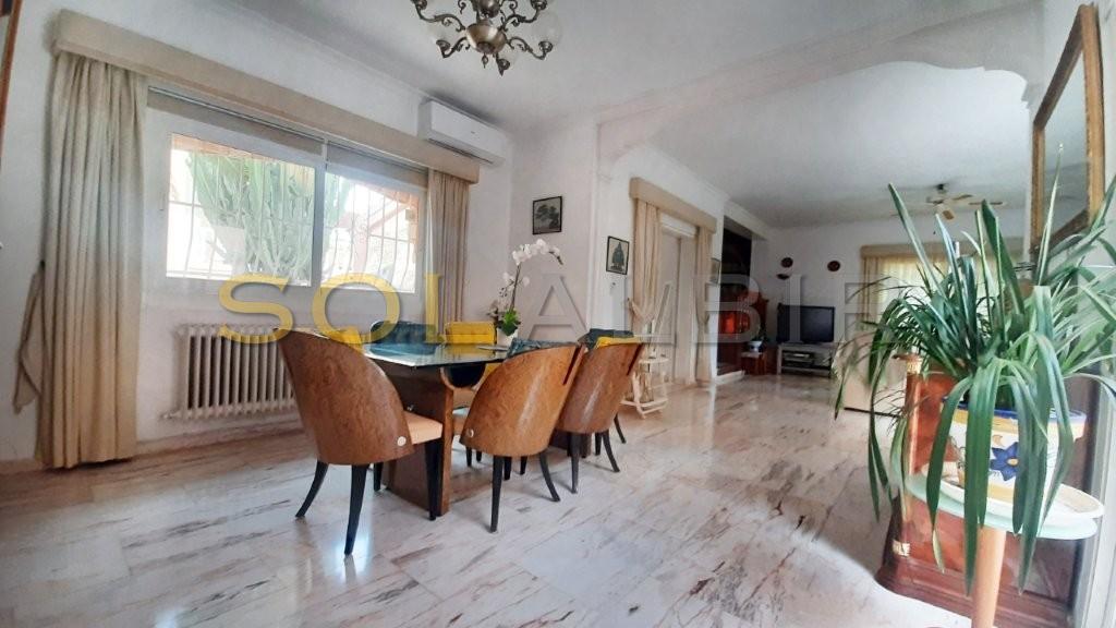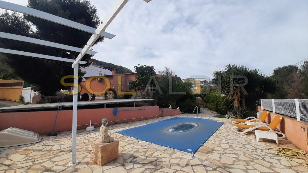 Tradicional spanish villa on a large corner plot near the most exclusive hotel (SHA) in Albir. Main house (all on one level) with currently 3 bedrooms and 3 bathrooms. The corridor into the bedrooms allows direct acces to the old garage which can be easily be converted into a 4th bedroom. The kitchen opens up unto an interior patio and a secluded terrace, ideal for leisurely breakfasts or intimite dinners. On the lower level there is a guest apartment with it's own entrance and even private parking as there are entrances available to the plot from two streets. Airconditioning and central heating (gastank) in both the main house and the guest apartment. Spacious 2 car garage. The mature mediterranean garden offers various terraces around the house and of course a private pool with a paved BBQ area. Wide open views (green zone in front) give an extra dimension of spaciousness to this caracterfull villa. Come see for yourself and book your viewing with us today!